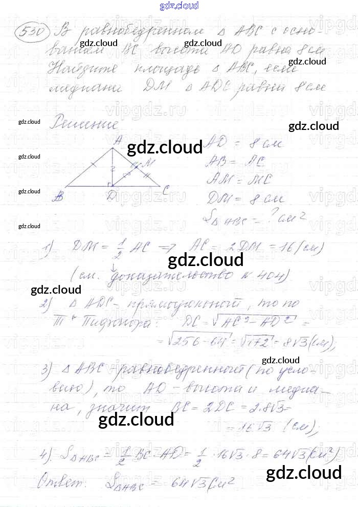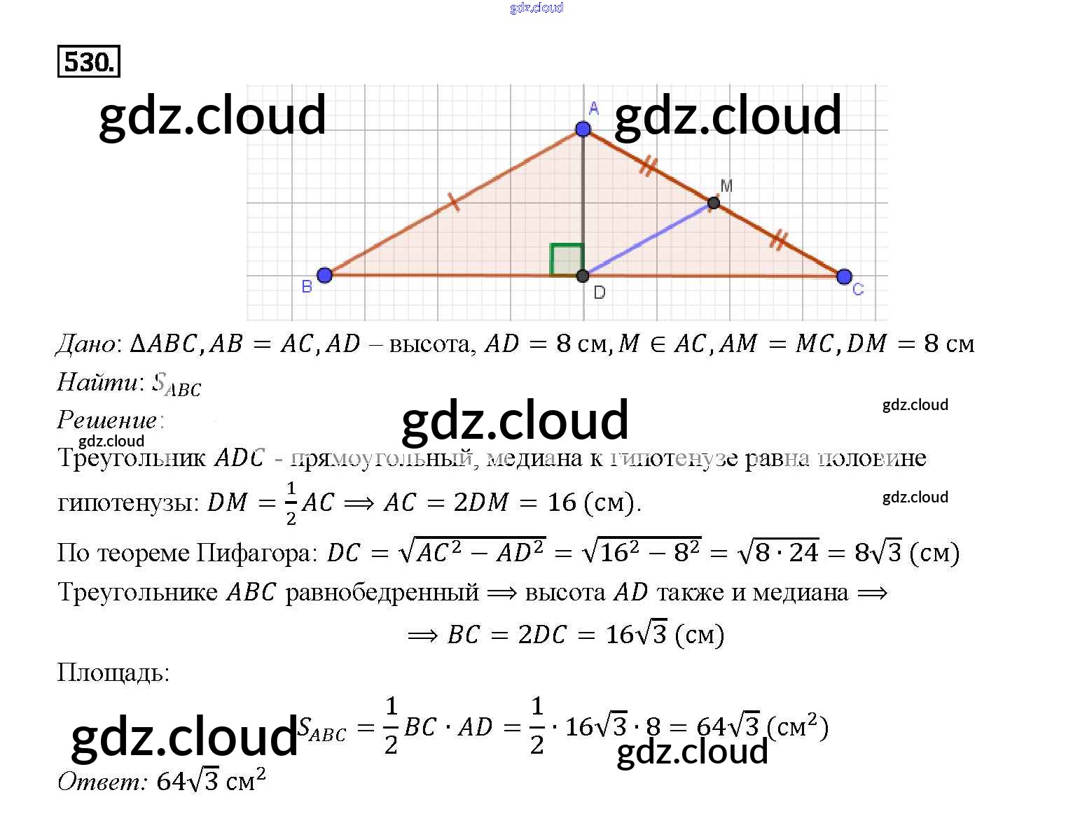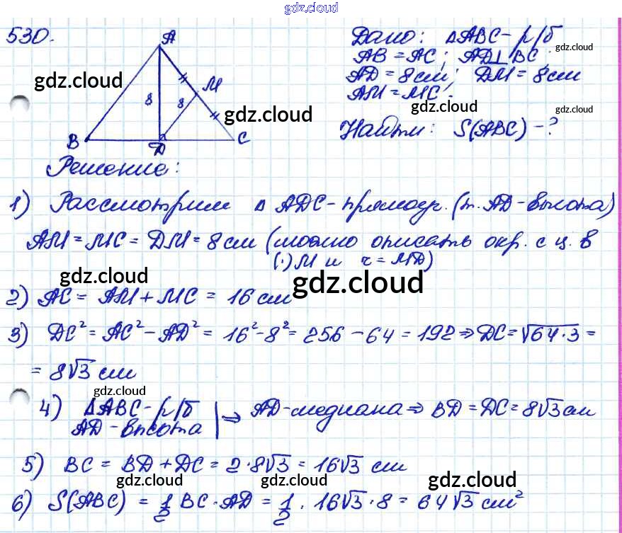 Ответ на задание 530 Учебник Геометрия за 7, 8, 9 (седьмой, восьмой, девятый) класс Атанасян, Бутузов, Кадомцев 2010