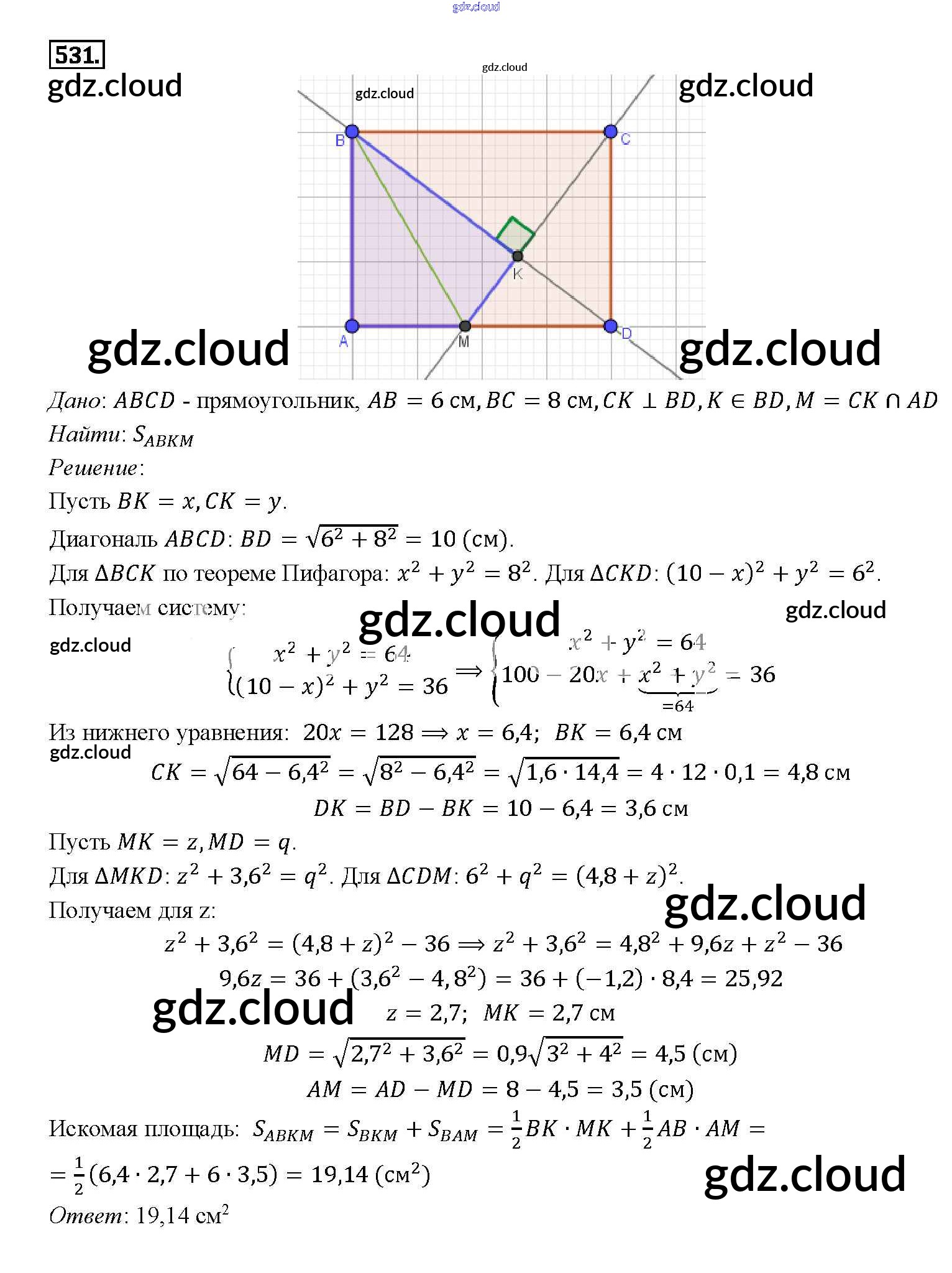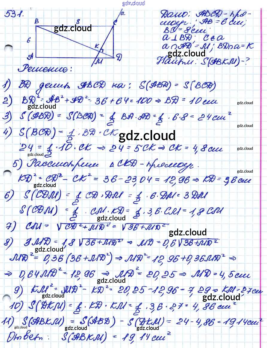 Ответ на задание 531 Учебник Геометрия за 7, 8, 9 (седьмой, восьмой, девятый) класс Атанасян, Бутузов, Кадомцев 2010