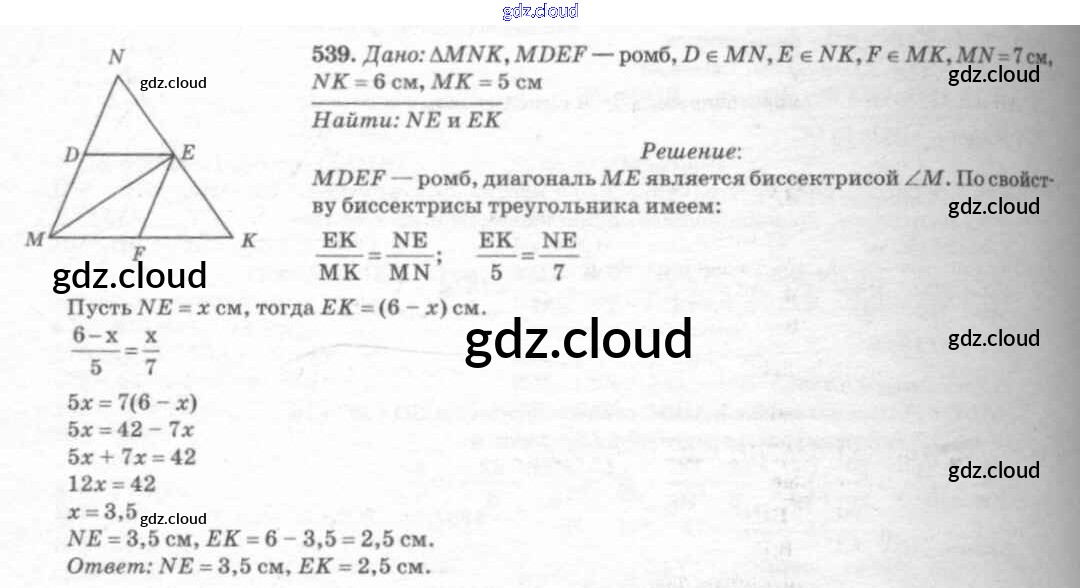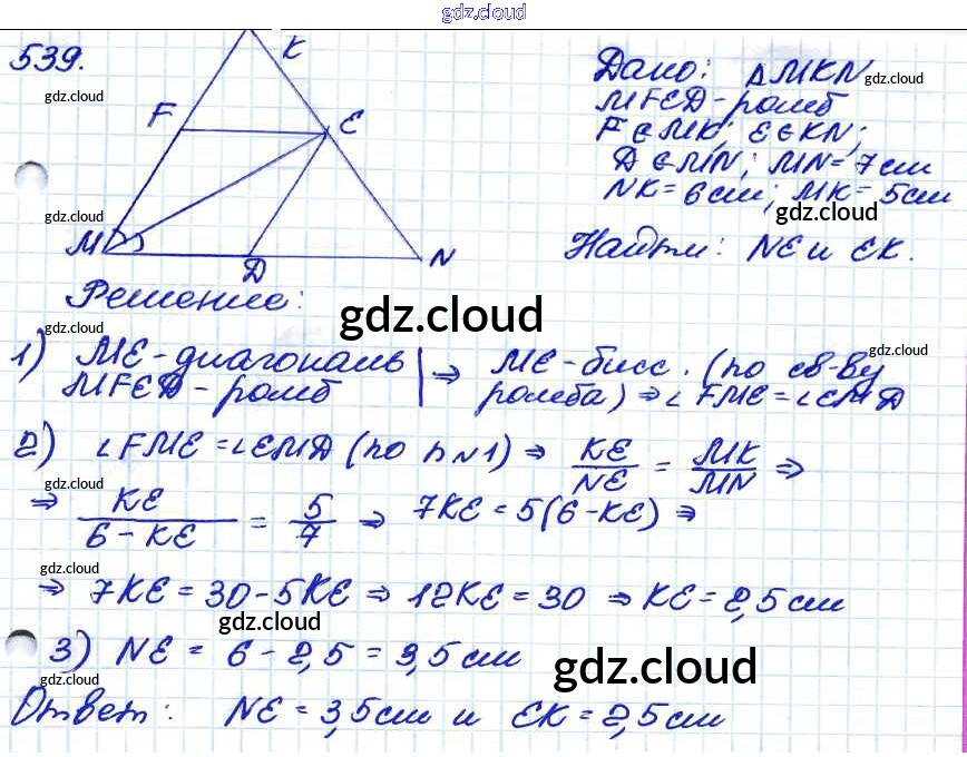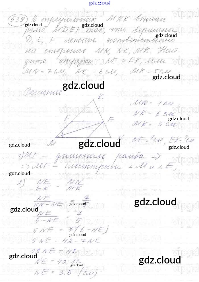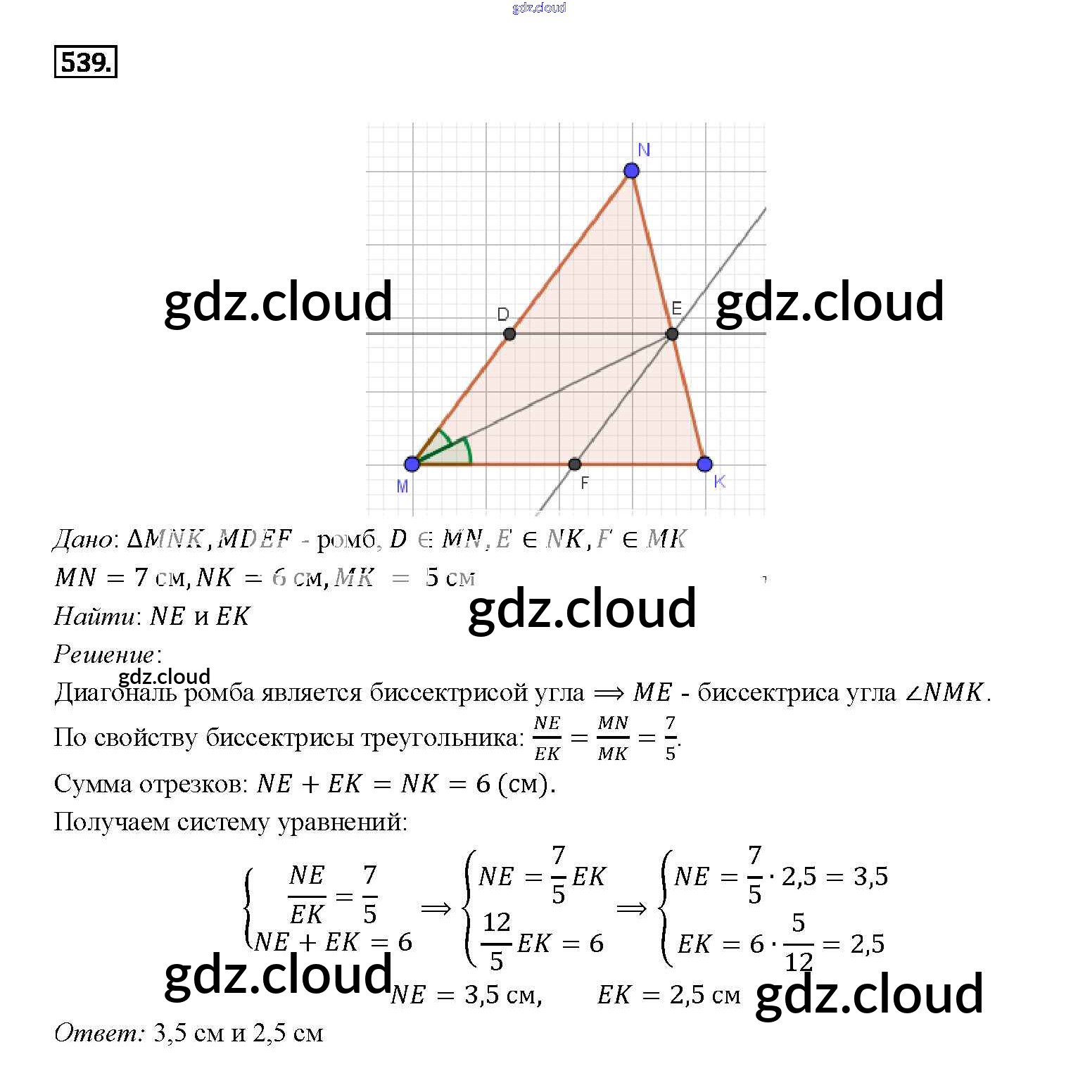 Ответ на задание 539 Учебник Геометрия за 7, 8, 9 (седьмой, восьмой, девятый) класс Атанасян, Бутузов, Кадомцев 2010