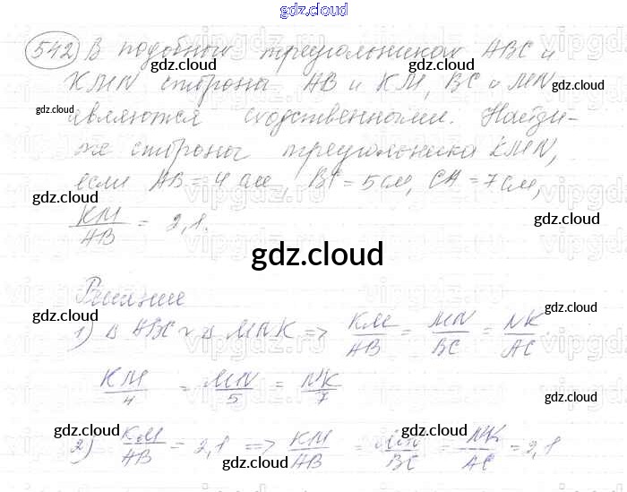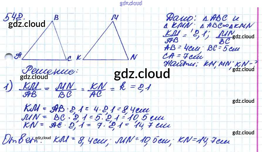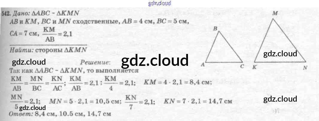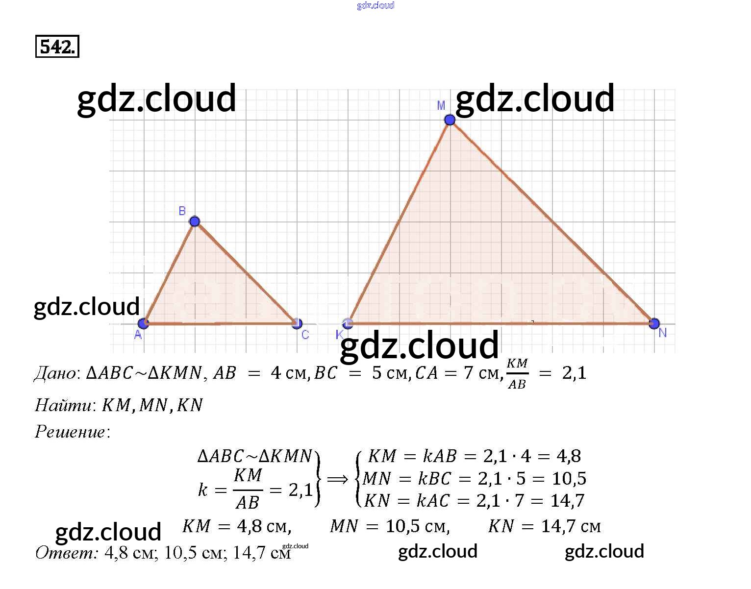 Ответ на задание 542 Учебник Геометрия за 7, 8, 9 (седьмой, восьмой, девятый) класс Атанасян, Бутузов, Кадомцев 2010