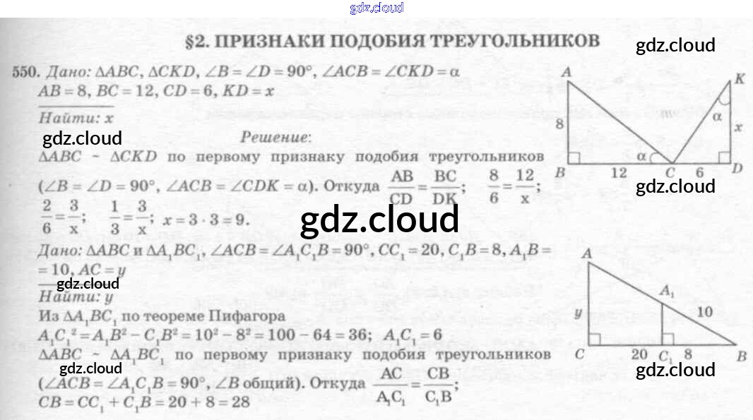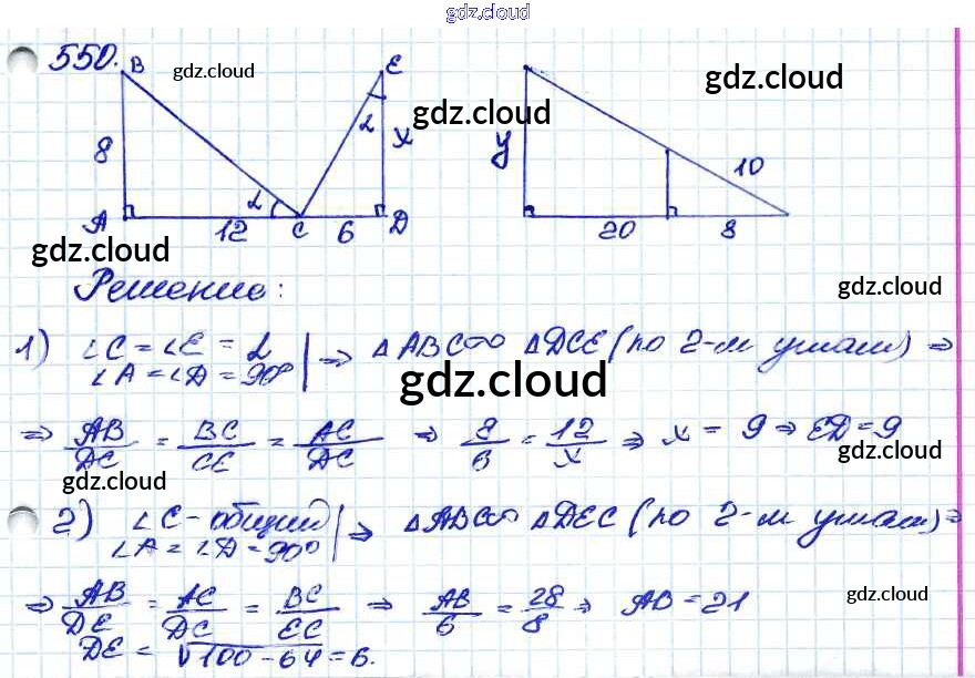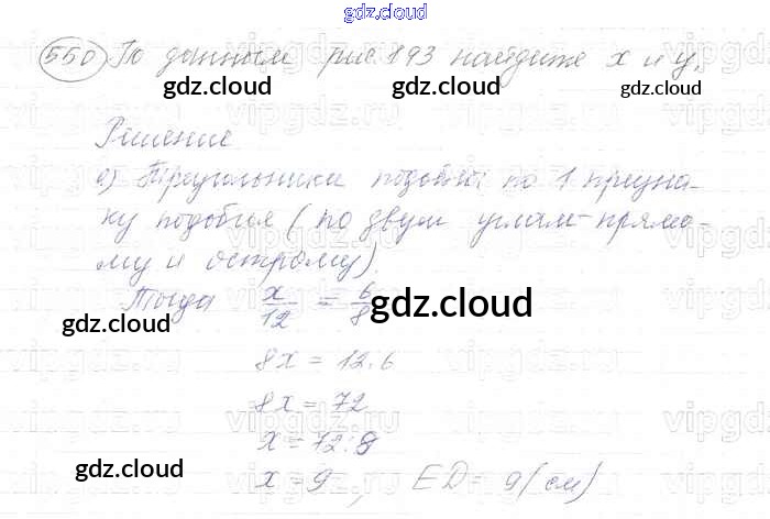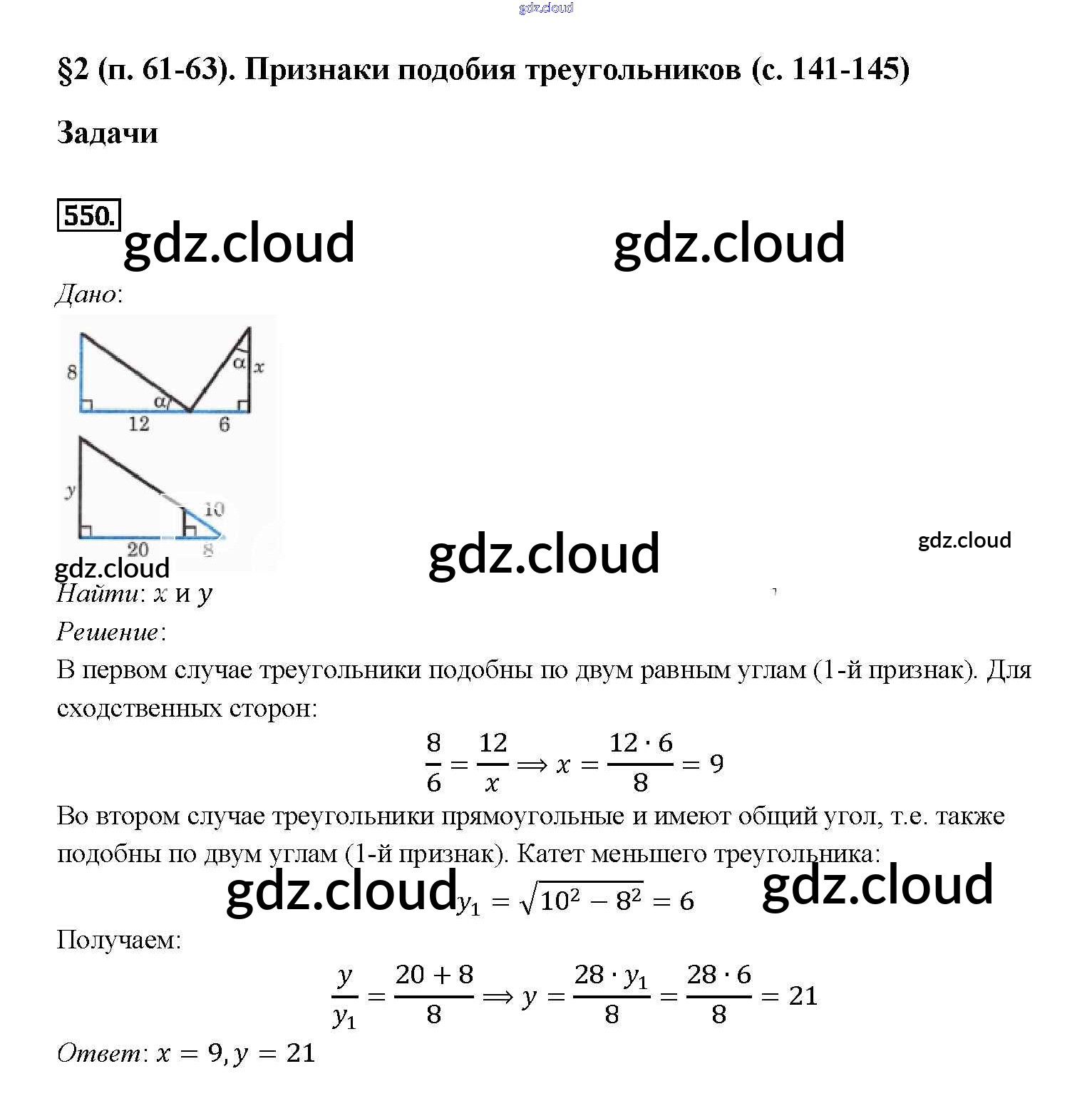 Ответ на задание 550 Учебник Геометрия за 7, 8, 9 (седьмой, восьмой, девятый) класс Атанасян, Бутузов, Кадомцев 2010