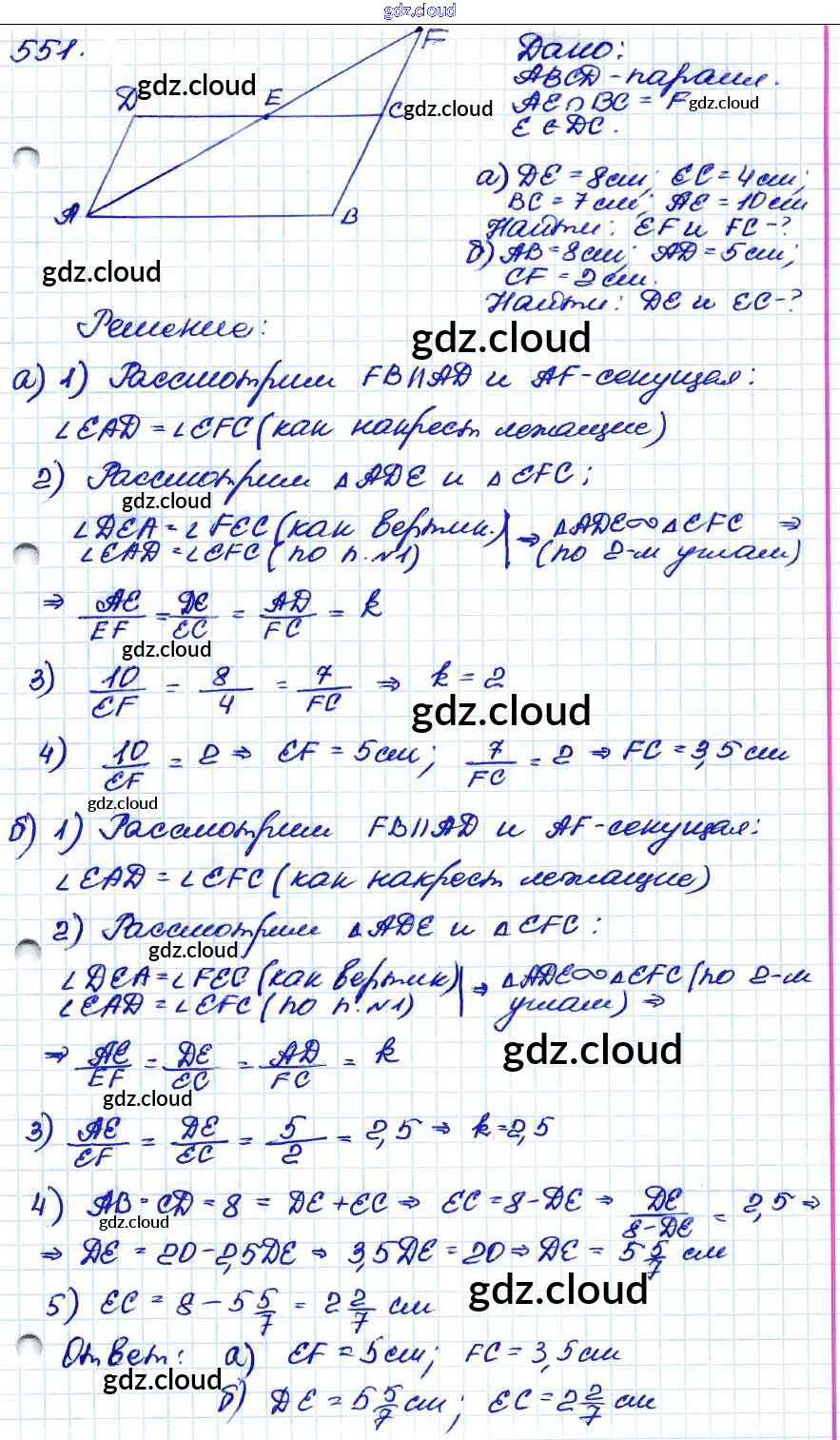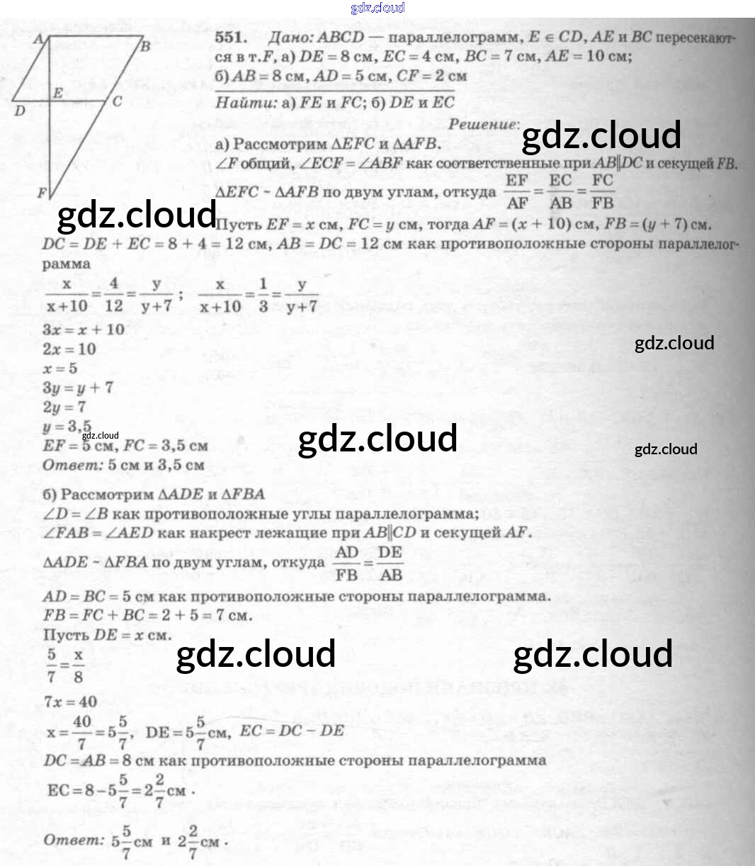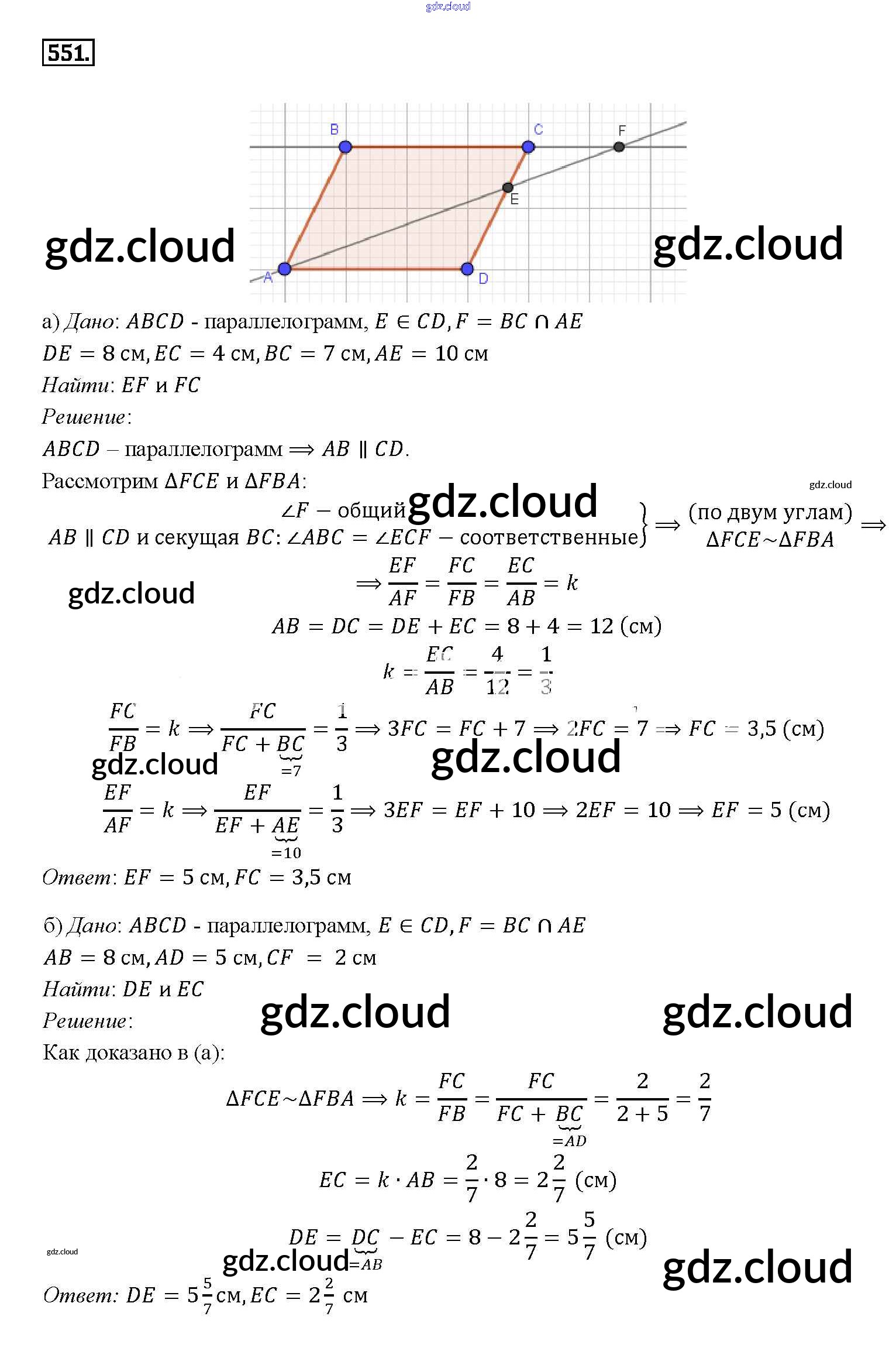 Ответ на задание 551 Учебник Геометрия за 7, 8, 9 (седьмой, восьмой, девятый) класс Атанасян, Бутузов, Кадомцев 2010