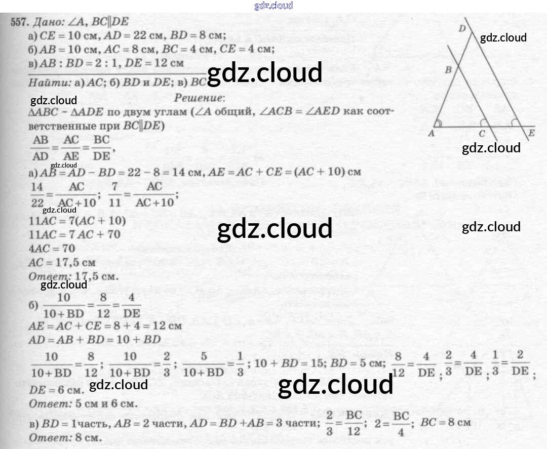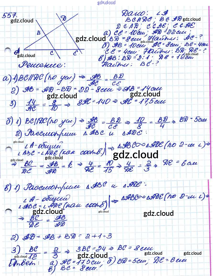 Ответ на задание 557 Учебник Геометрия за 7, 8, 9 (седьмой, восьмой, девятый) класс Атанасян, Бутузов, Кадомцев 2010