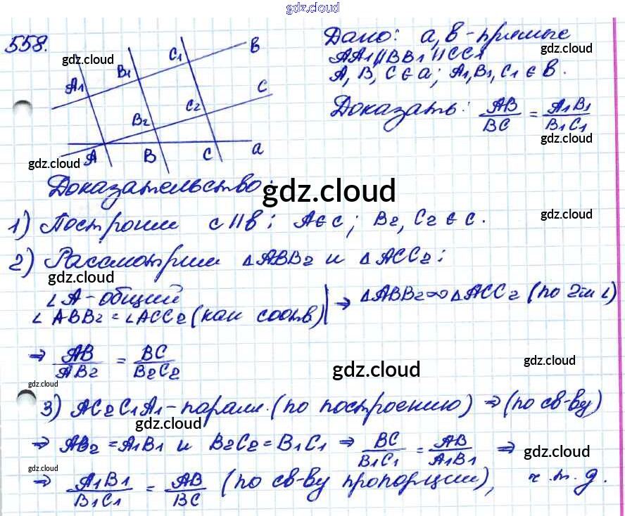 Ответ на задание 558 Учебник Геометрия за 7, 8, 9 (седьмой, восьмой, девятый) класс Атанасян, Бутузов, Кадомцев 2010