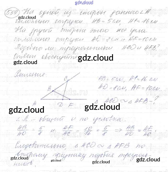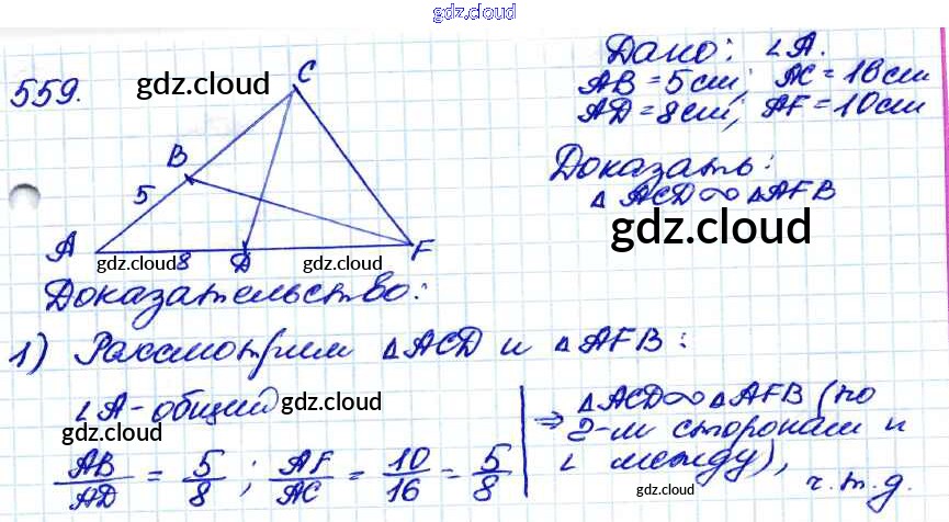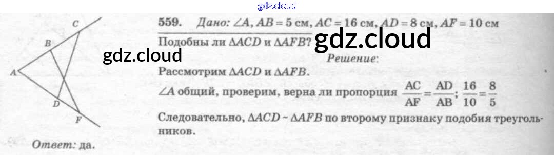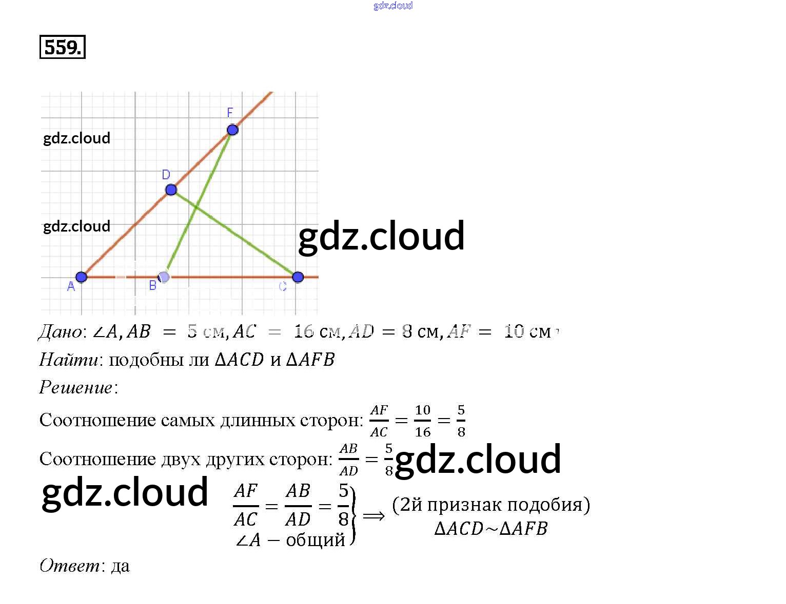 Ответ на задание 559 Учебник Геометрия за 7, 8, 9 (седьмой, восьмой, девятый) класс Атанасян, Бутузов, Кадомцев 2010