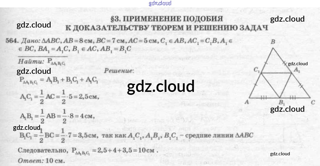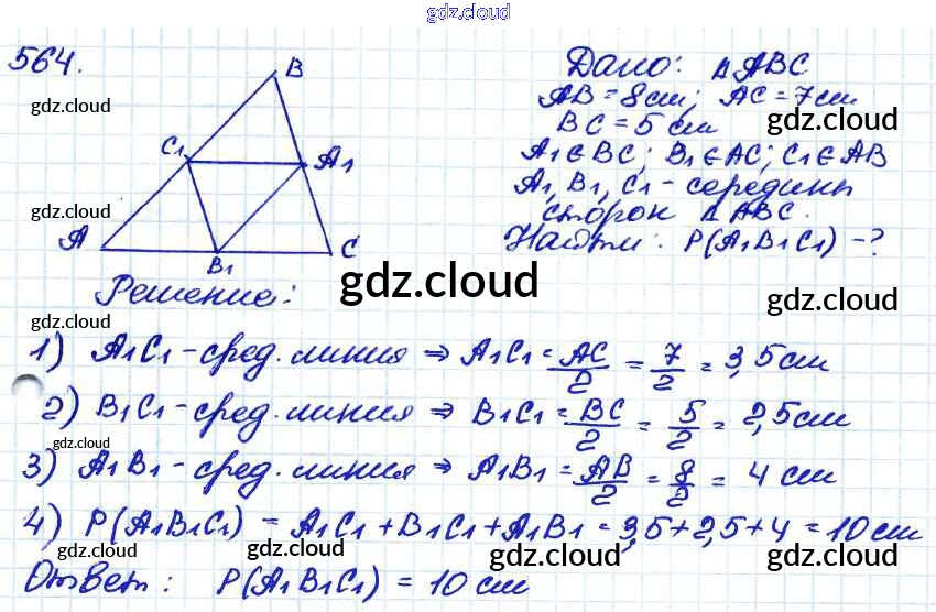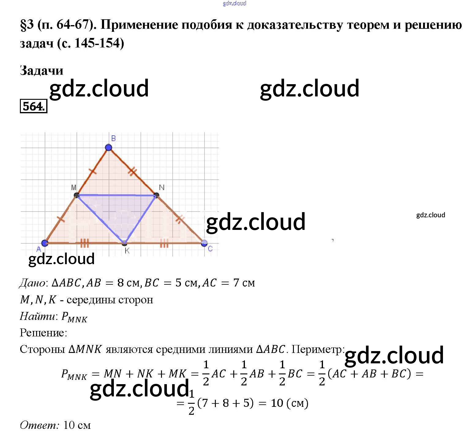 Ответ на задание 564 Учебник Геометрия за 7, 8, 9 (седьмой, восьмой, девятый) класс Атанасян, Бутузов, Кадомцев 2010