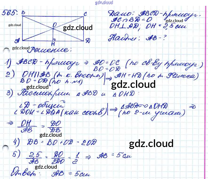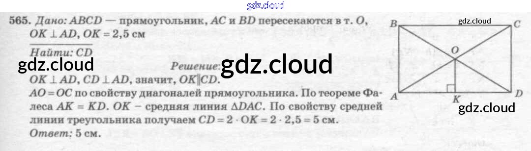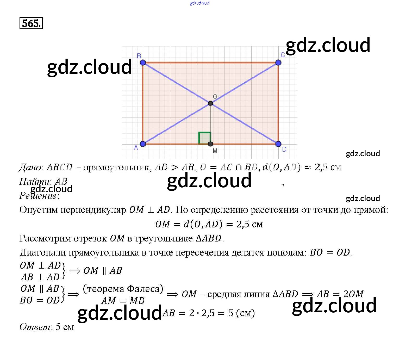 Ответ на задание 565 Учебник Геометрия за 7, 8, 9 (седьмой, восьмой, девятый) класс Атанасян, Бутузов, Кадомцев 2010