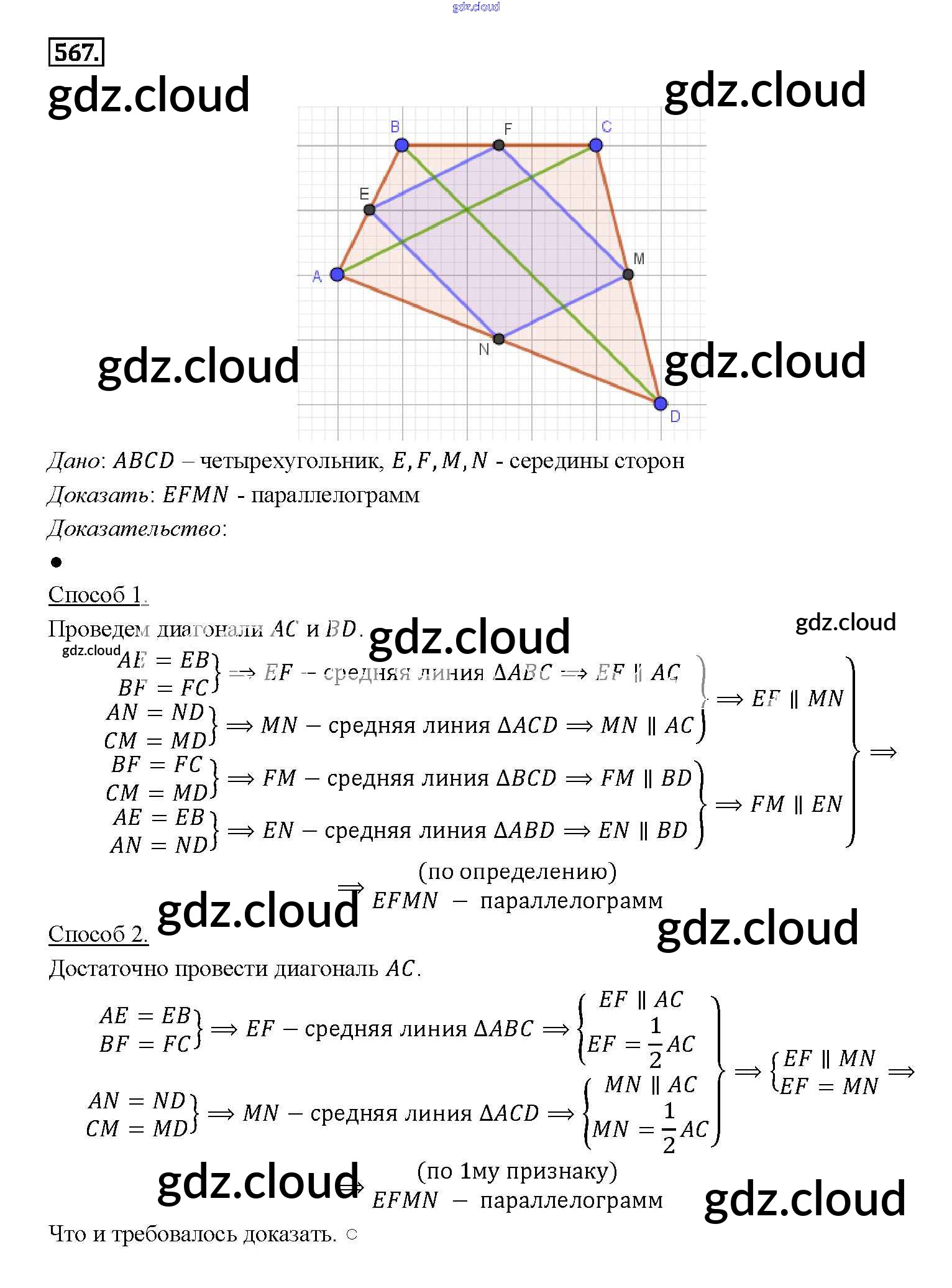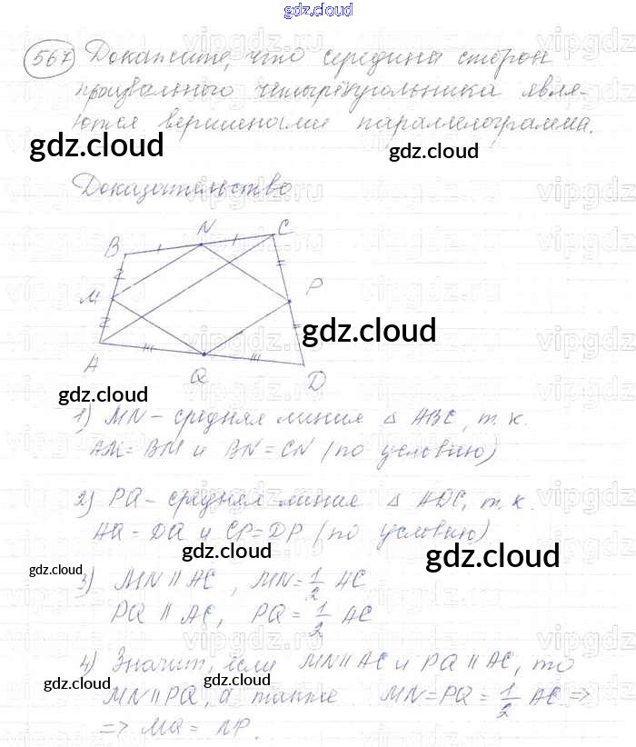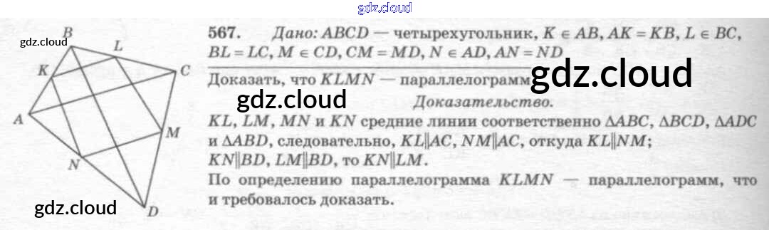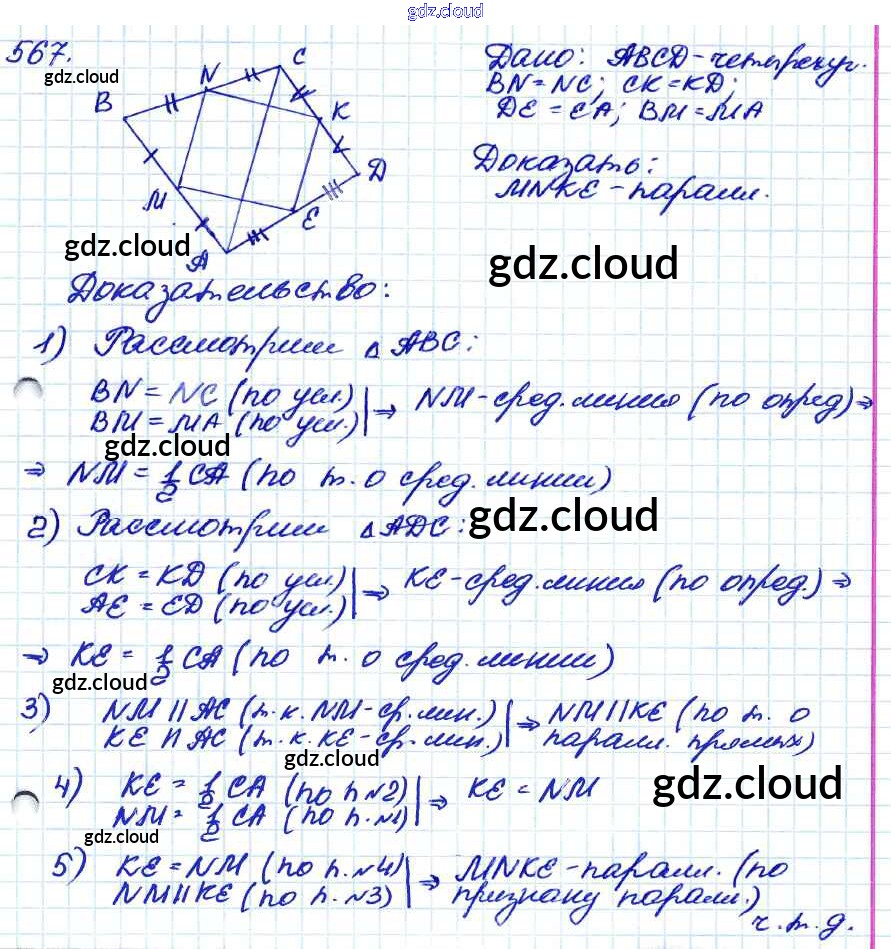 Ответ на задание 567 Учебник Геометрия за 7, 8, 9 (седьмой, восьмой, девятый) класс Атанасян, Бутузов, Кадомцев 2010
