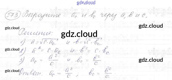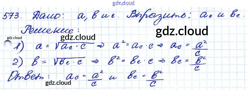 Ответ на задание 573 Учебник Геометрия за 7, 8, 9 (седьмой, восьмой, девятый) класс Атанасян, Бутузов, Кадомцев 2010