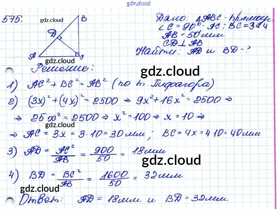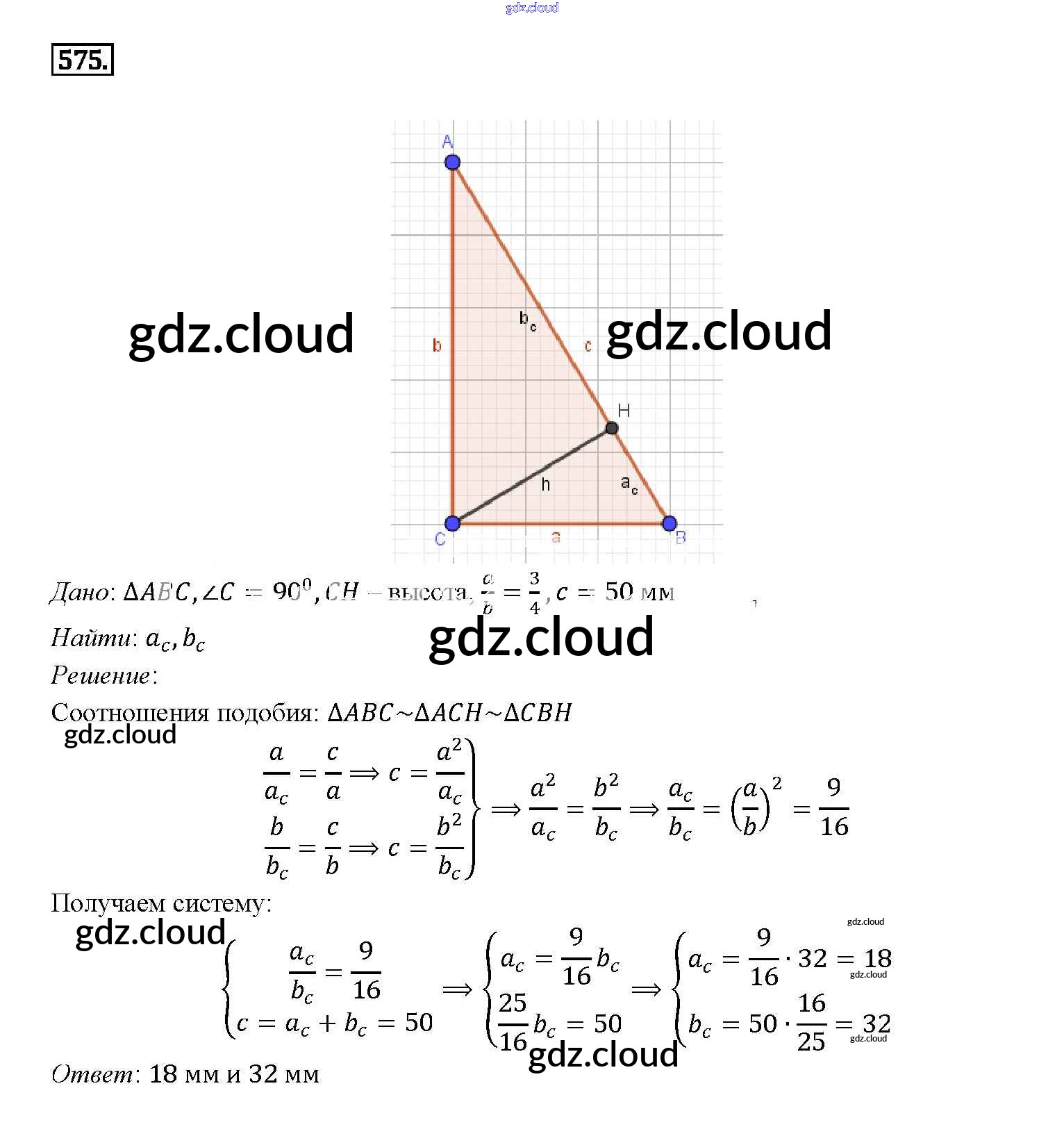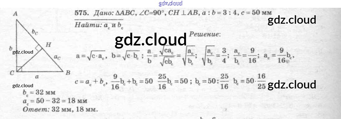 Ответ на задание 575 Учебник Геометрия за 7, 8, 9 (седьмой, восьмой, девятый) класс Атанасян, Бутузов, Кадомцев 2010
