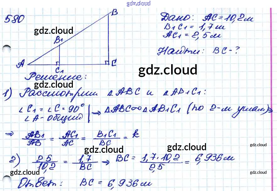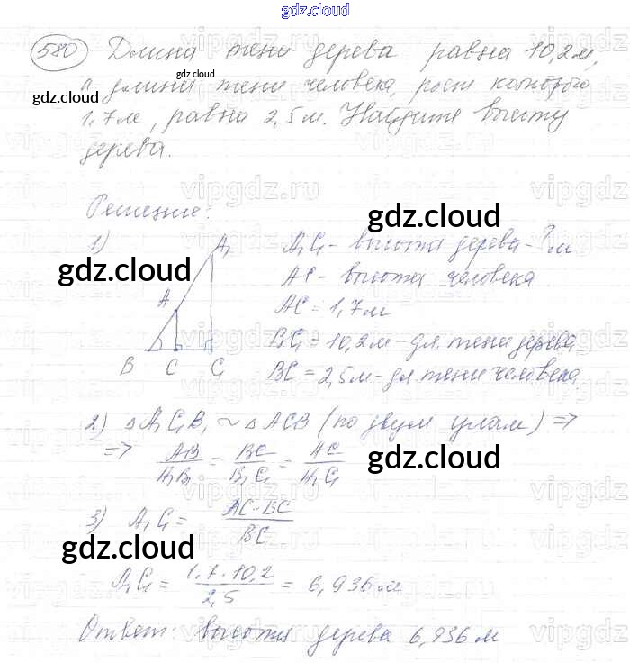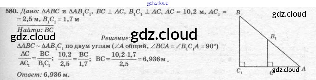Ответ на задание 580 Учебник Геометрия за 7, 8, 9 (седьмой, восьмой, девятый) класс Атанасян, Бутузов, Кадомцев 2010