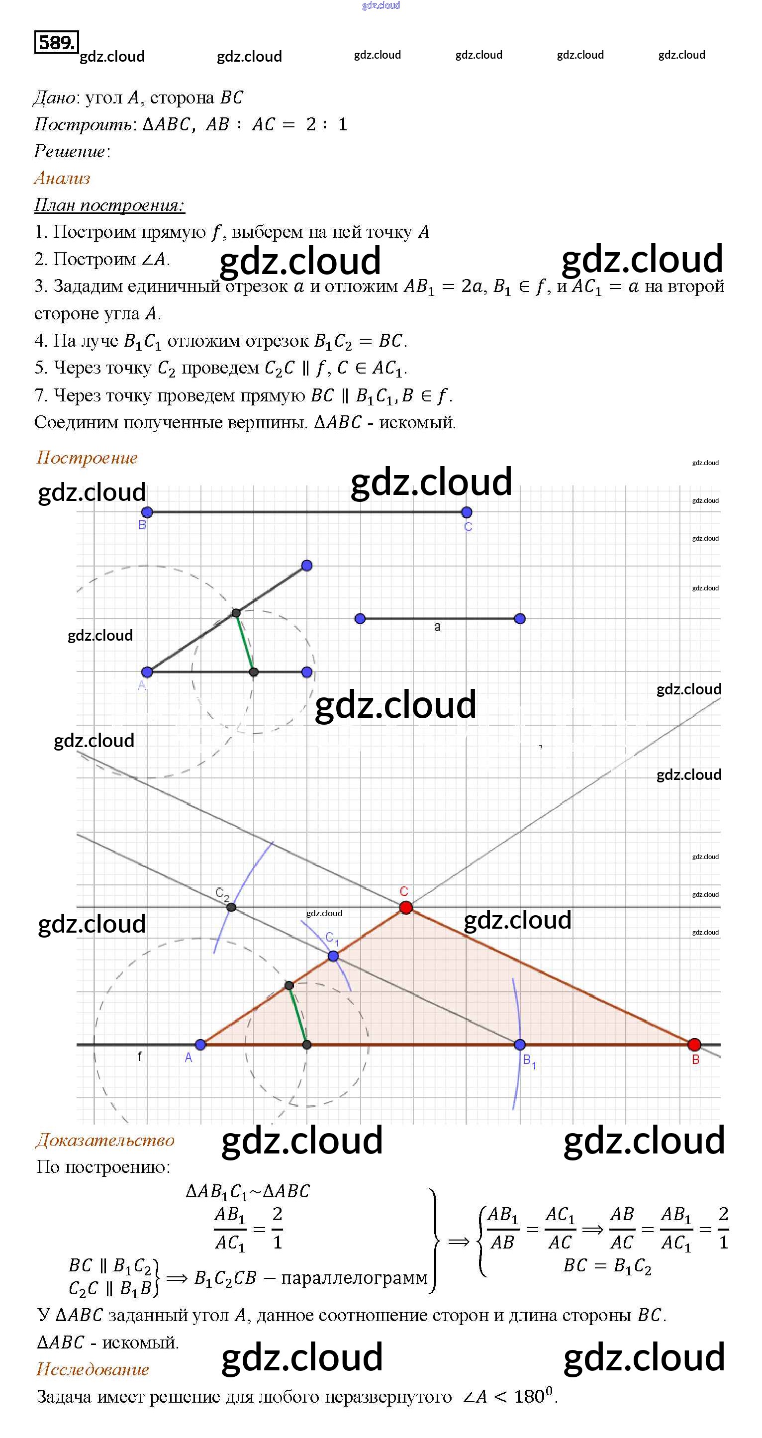 Ответ на задание 589 Учебник Геометрия за 7, 8, 9 (седьмой, восьмой, девятый) класс Атанасян, Бутузов, Кадомцев 2010