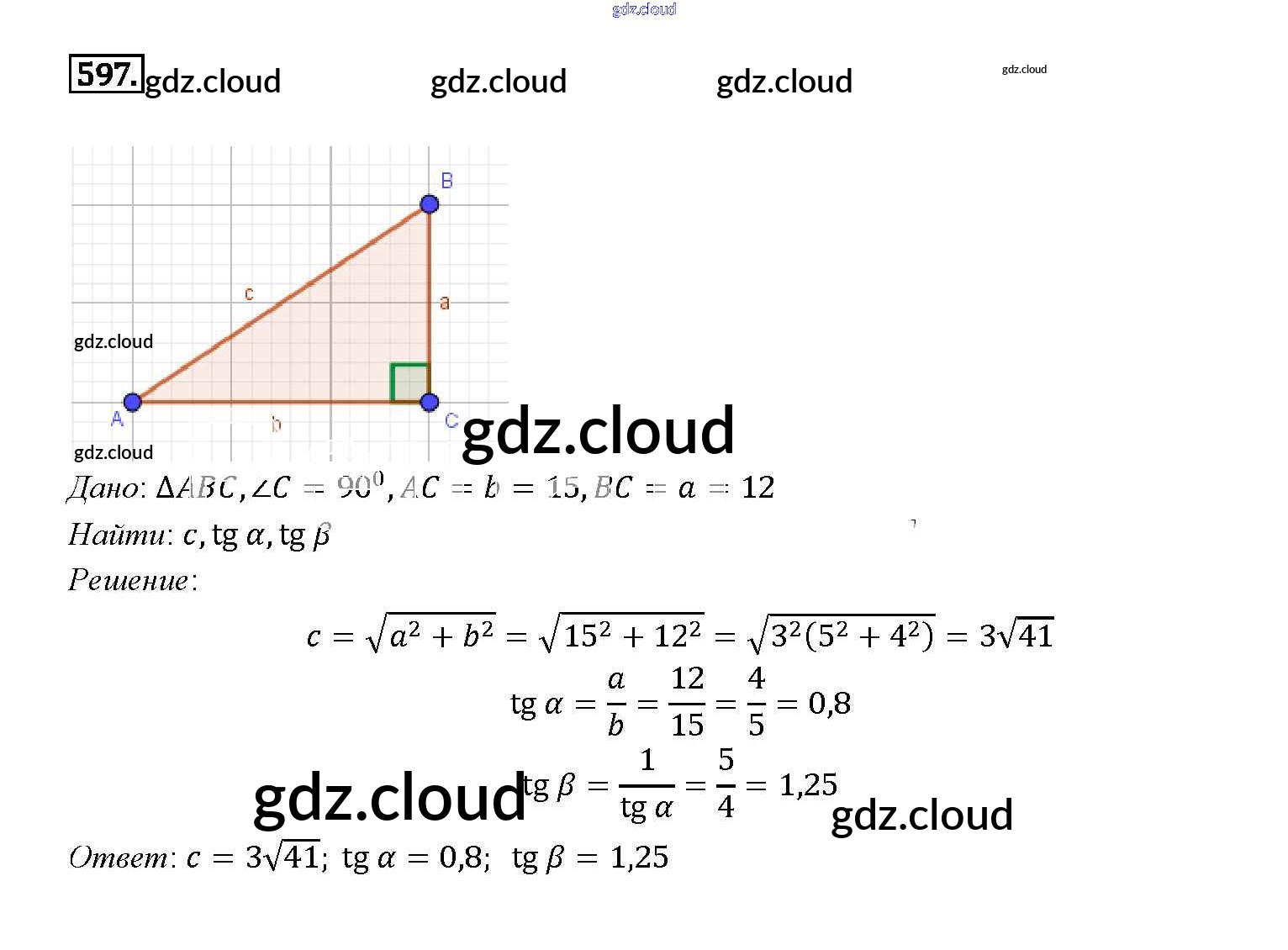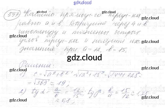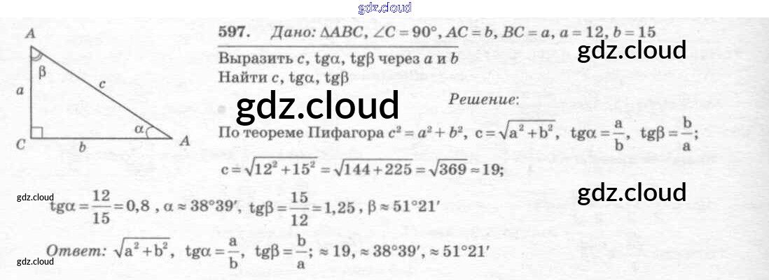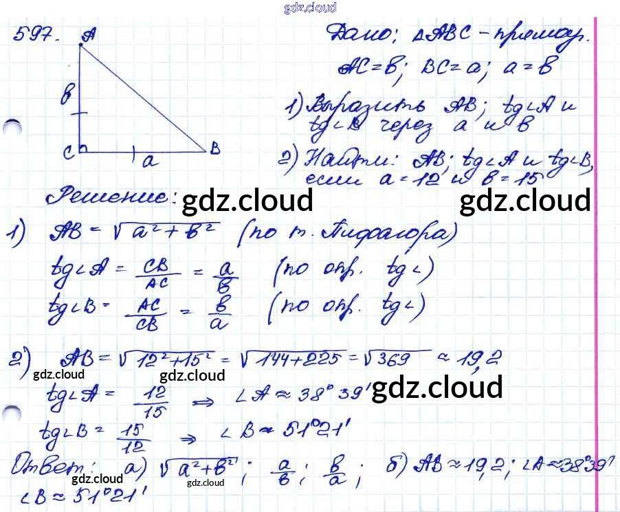 Ответ на задание 597 Учебник Геометрия за 7, 8, 9 (седьмой, восьмой, девятый) класс Атанасян, Бутузов, Кадомцев 2010