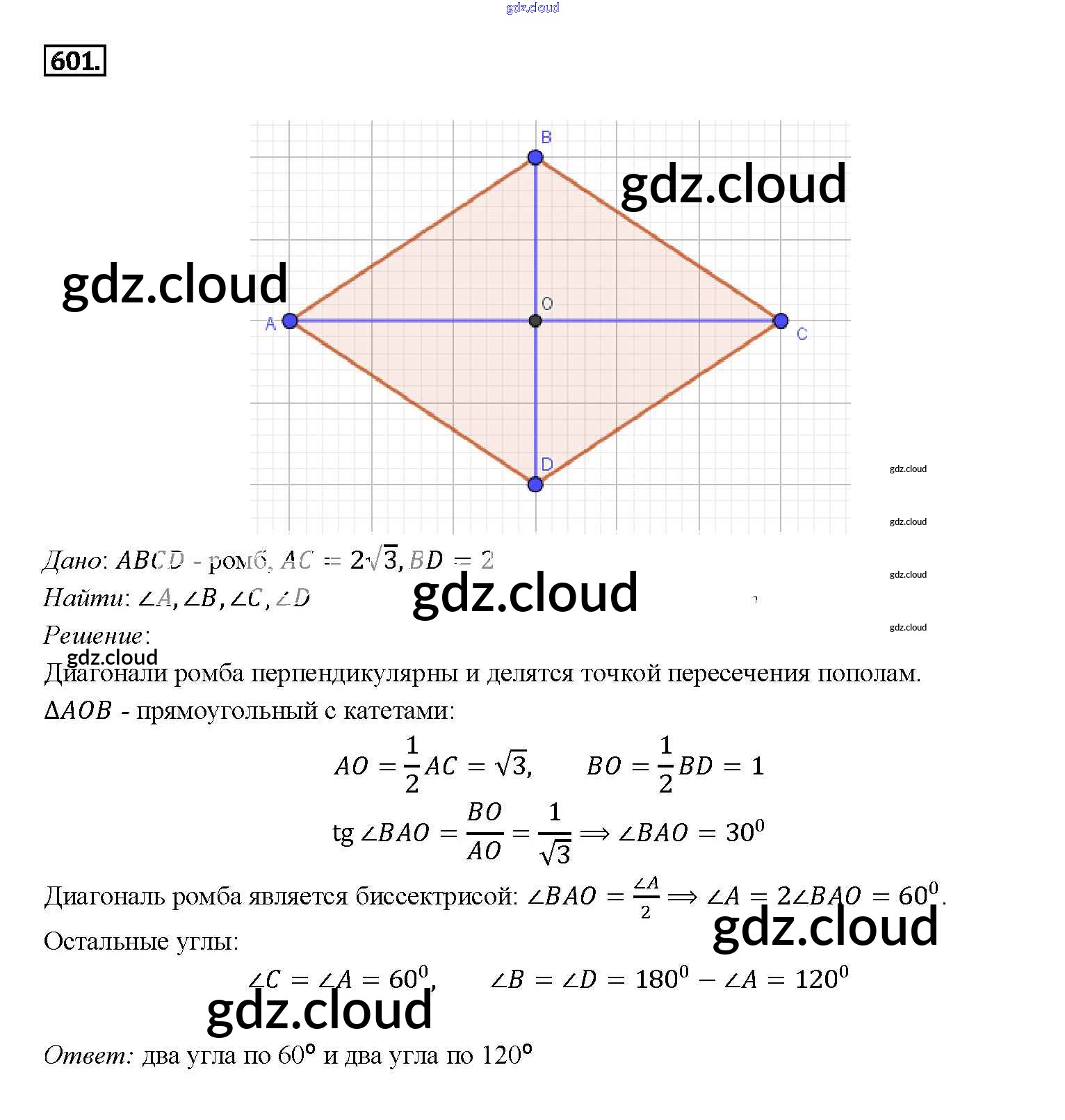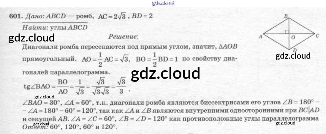 Ответ на задание 601 Учебник Геометрия за 7, 8, 9 (седьмой, восьмой, девятый) класс Атанасян, Бутузов, Кадомцев 2010