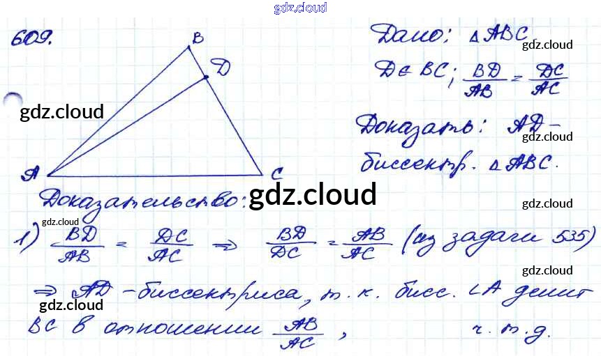 Ответ на задание 609 Учебник Геометрия за 7, 8, 9 (седьмой, восьмой, девятый) класс Атанасян, Бутузов, Кадомцев 2010
