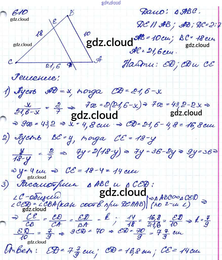 Ответ на задание 610 Учебник Геометрия за 7, 8, 9 (седьмой, восьмой, девятый) класс Атанасян, Бутузов, Кадомцев 2010