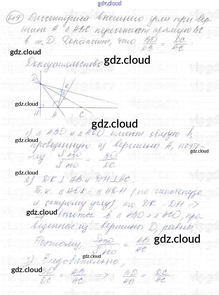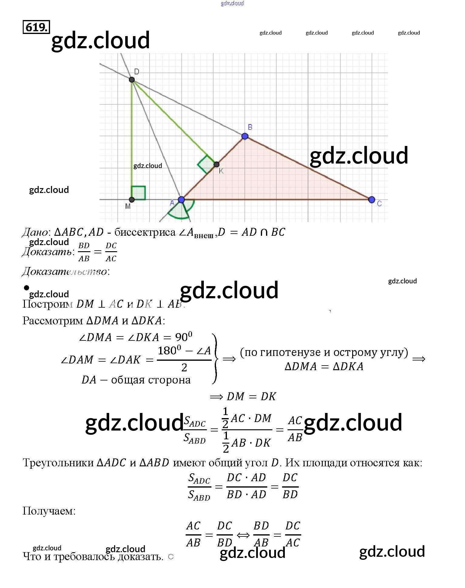 Ответ на задание 619 Учебник Геометрия за 7, 8, 9 (седьмой, восьмой, девятый) класс Атанасян, Бутузов, Кадомцев 2010