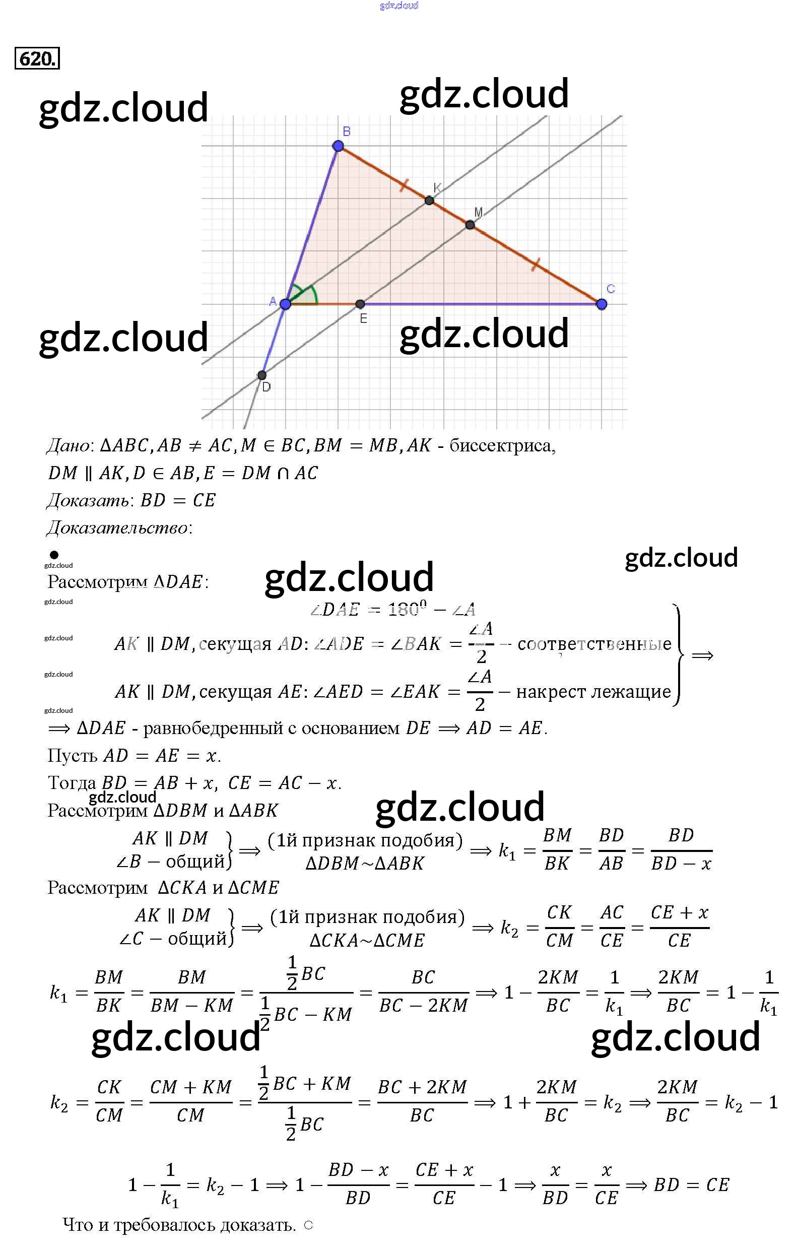 Ответ на задание 620 Учебник Геометрия за 7, 8, 9 (седьмой, восьмой, девятый) класс Атанасян, Бутузов, Кадомцев 2010