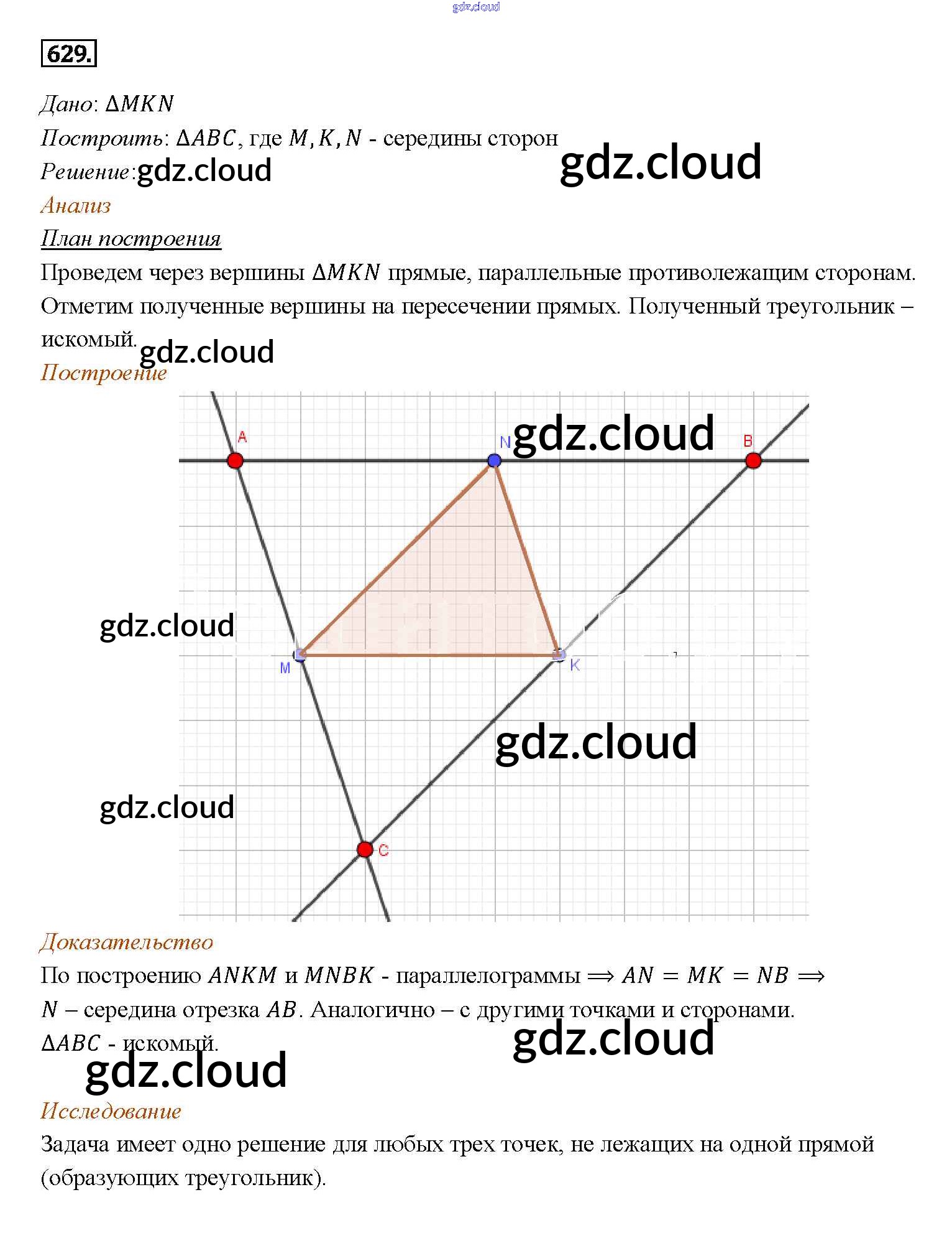 Ответ на задание 629 Учебник Геометрия за 7, 8, 9 (седьмой, восьмой, девятый) класс Атанасян, Бутузов, Кадомцев 2010