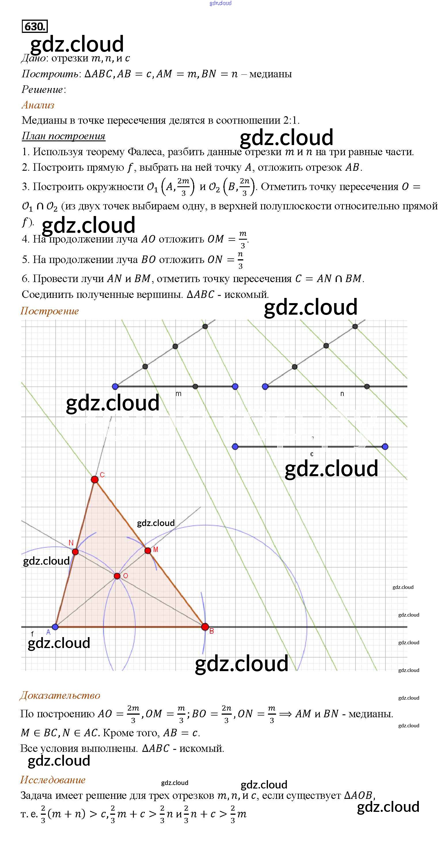 Ответ на задание 630 Учебник Геометрия за 7, 8, 9 (седьмой, восьмой, девятый) класс Атанасян, Бутузов, Кадомцев 2010