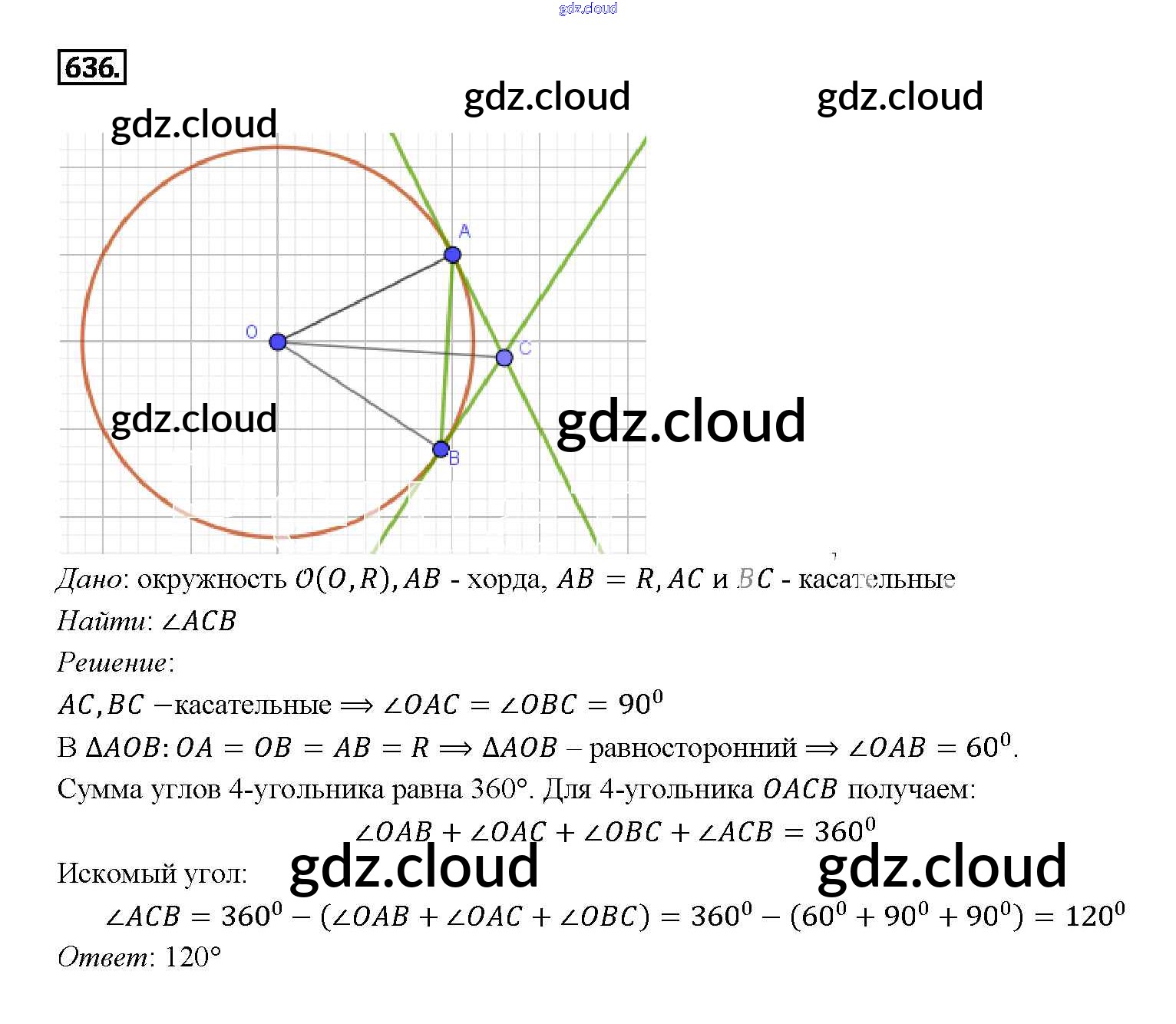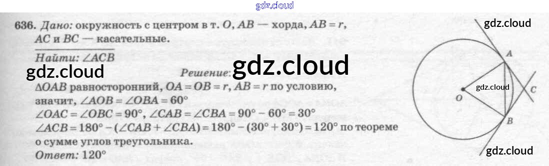 Ответ на задание 636 Учебник Геометрия за 7, 8, 9 (седьмой, восьмой, девятый) класс Атанасян, Бутузов, Кадомцев 2010