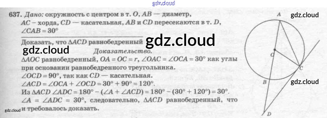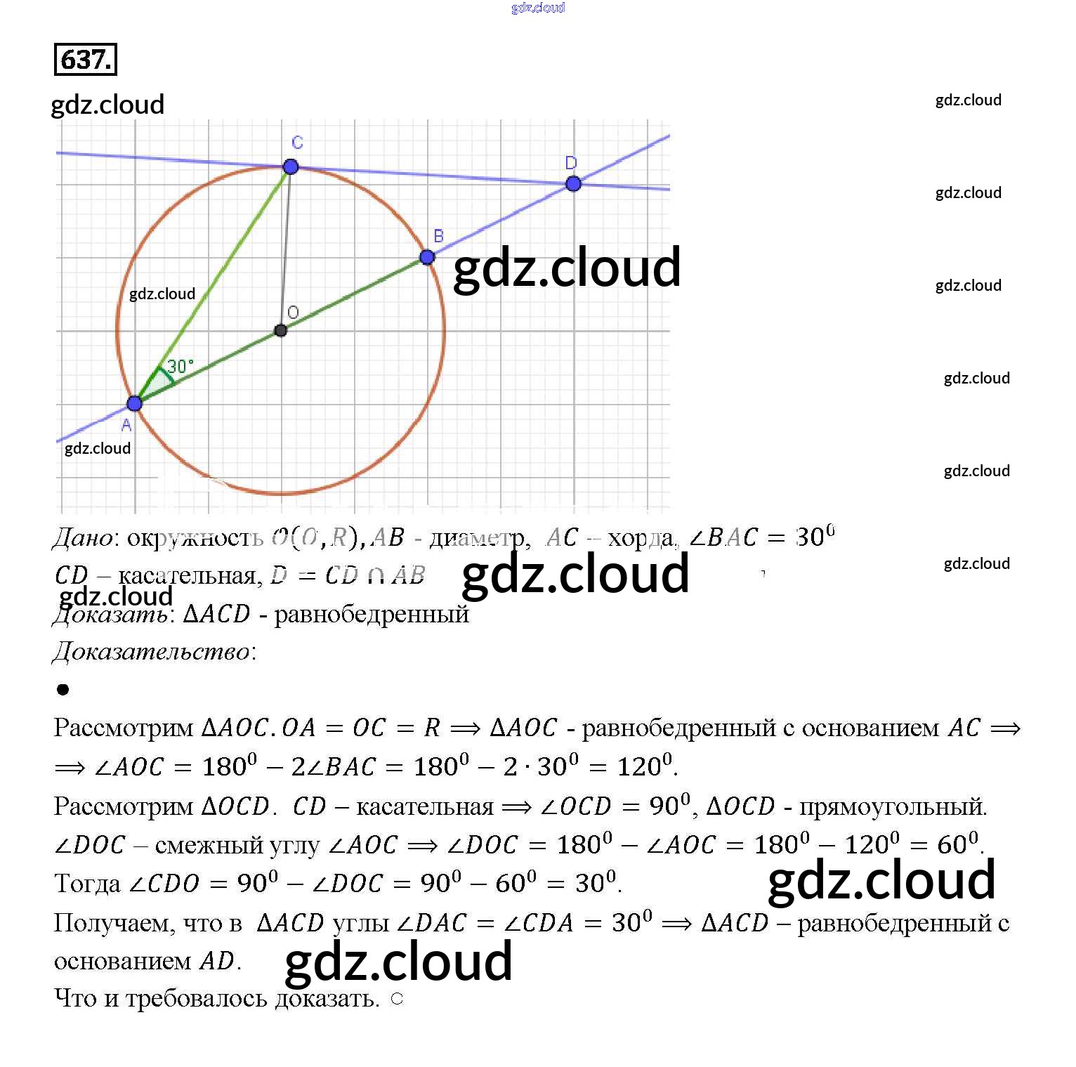 Ответ на задание 637 Учебник Геометрия за 7, 8, 9 (седьмой, восьмой, девятый) класс Атанасян, Бутузов, Кадомцев 2010