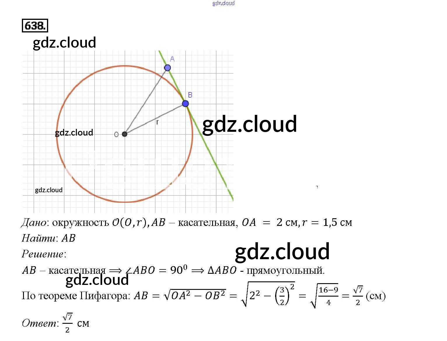 Ответ на задание 638 Учебник Геометрия за 7, 8, 9 (седьмой, восьмой, девятый) класс Атанасян, Бутузов, Кадомцев 2010