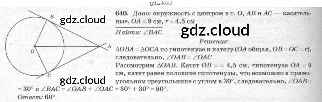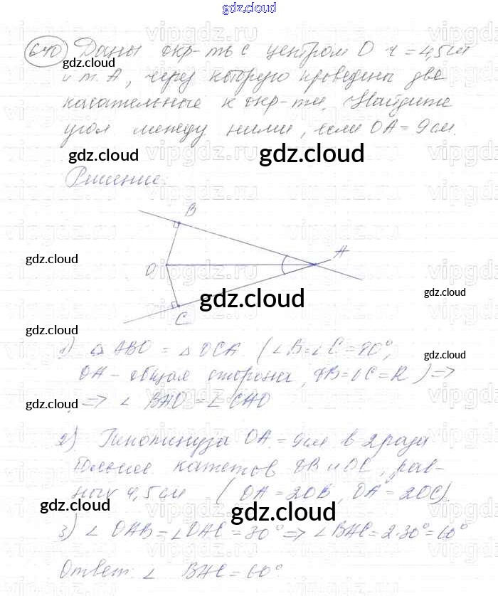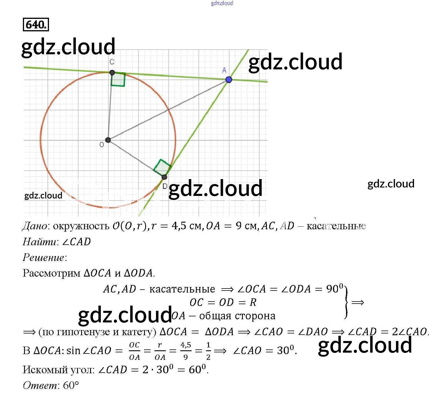 Ответ на задание 640 Учебник Геометрия за 7, 8, 9 (седьмой, восьмой, девятый) класс Атанасян, Бутузов, Кадомцев 2010