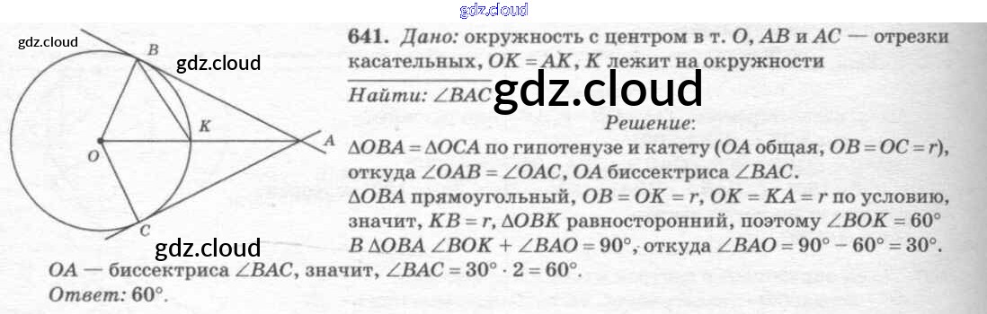 Ответ на задание 641 Учебник Геометрия за 7, 8, 9 (седьмой, восьмой, девятый) класс Атанасян, Бутузов, Кадомцев 2010