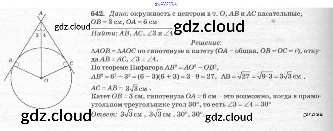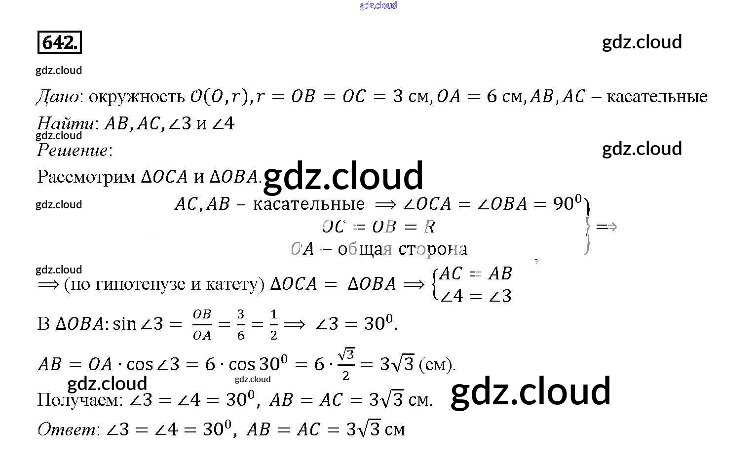 Ответ на задание 642 Учебник Геометрия за 7, 8, 9 (седьмой, восьмой, девятый) класс Атанасян, Бутузов, Кадомцев 2010