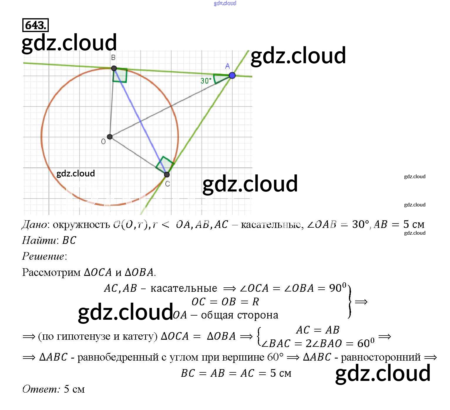 Ответ на задание 643 Учебник Геометрия за 7, 8, 9 (седьмой, восьмой, девятый) класс Атанасян, Бутузов, Кадомцев 2010