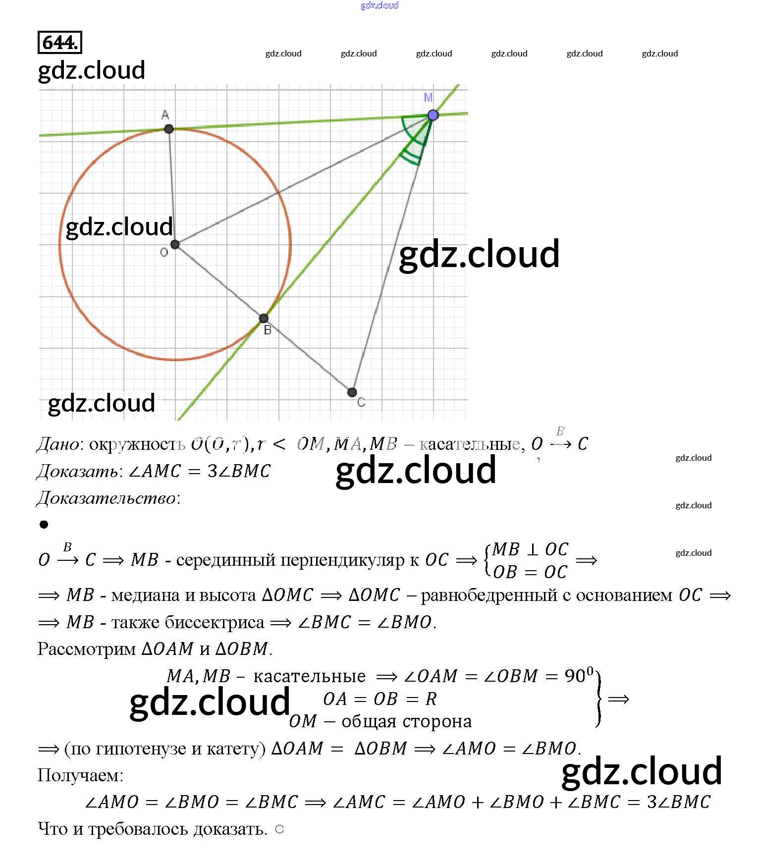 Ответ на задание 644 Учебник Геометрия за 7, 8, 9 (седьмой, восьмой, девятый) класс Атанасян, Бутузов, Кадомцев 2010