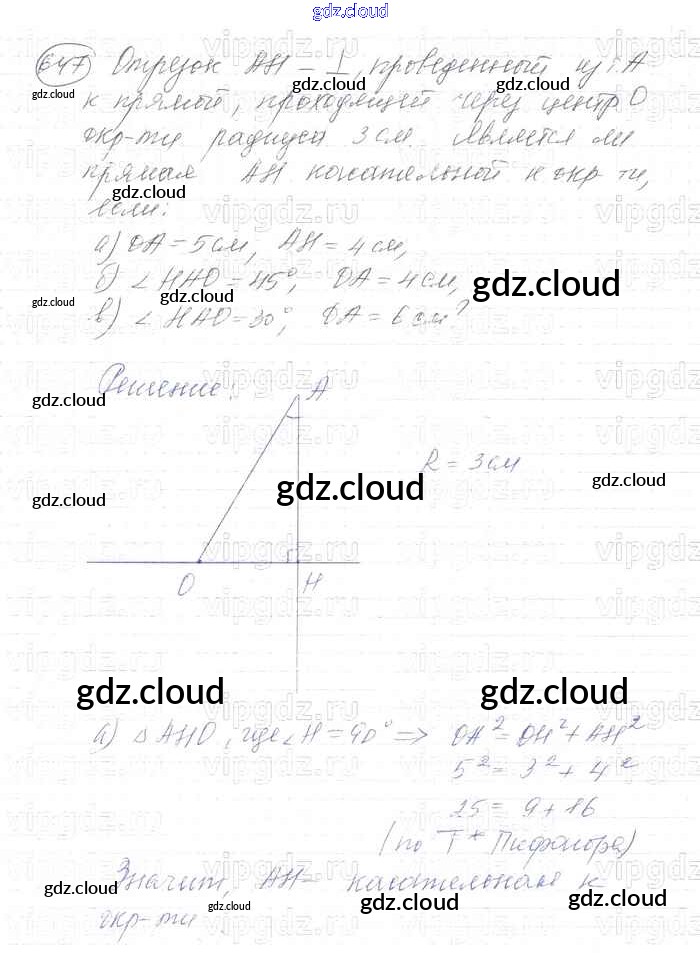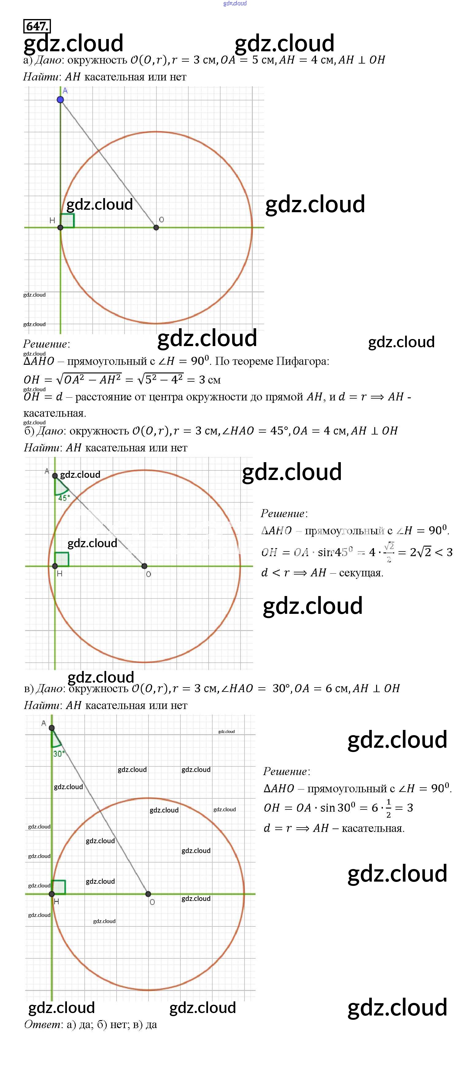 Ответ на задание 647 Учебник Геометрия за 7, 8, 9 (седьмой, восьмой, девятый) класс Атанасян, Бутузов, Кадомцев 2010