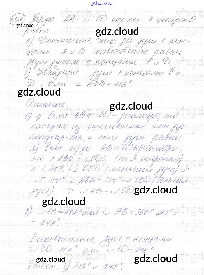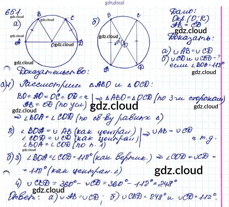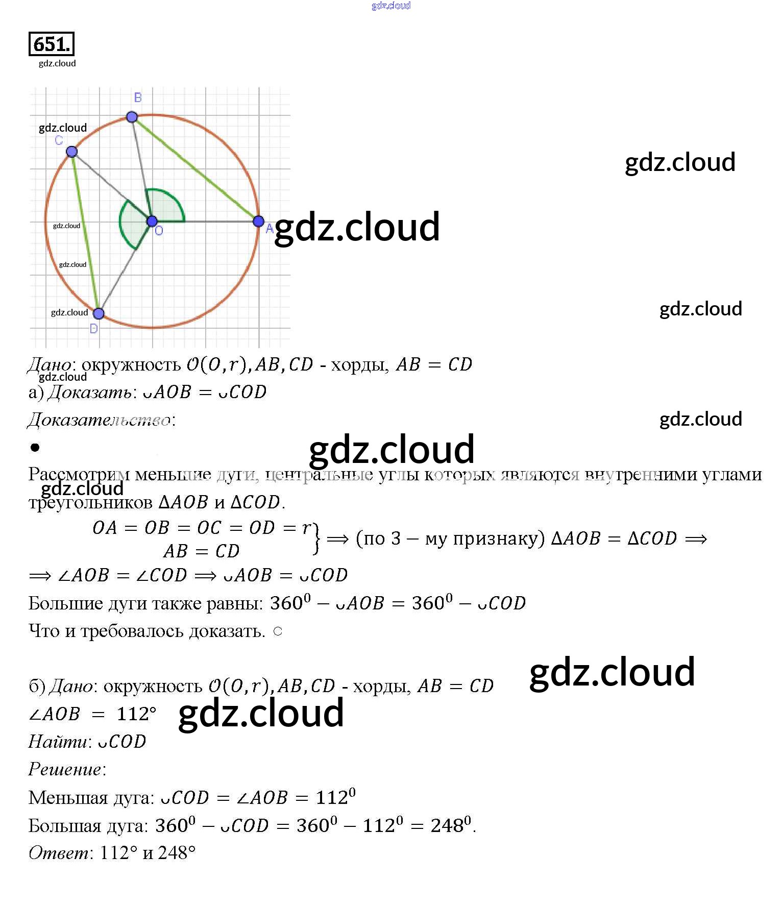Ответ на задание 651 Учебник Геометрия за 7, 8, 9 (седьмой, восьмой, девятый) класс Атанасян, Бутузов, Кадомцев 2010
