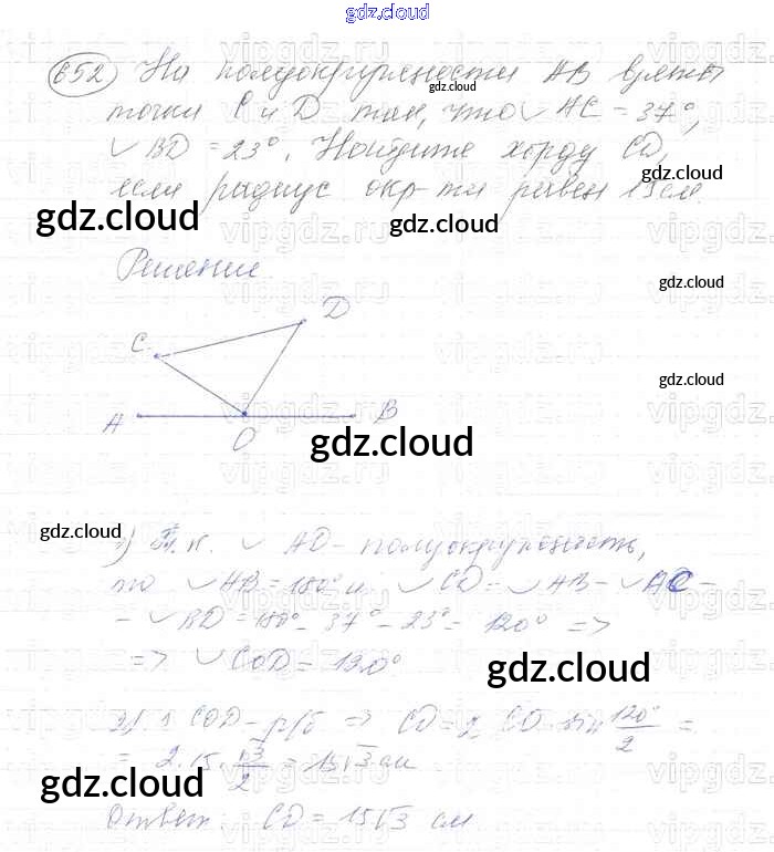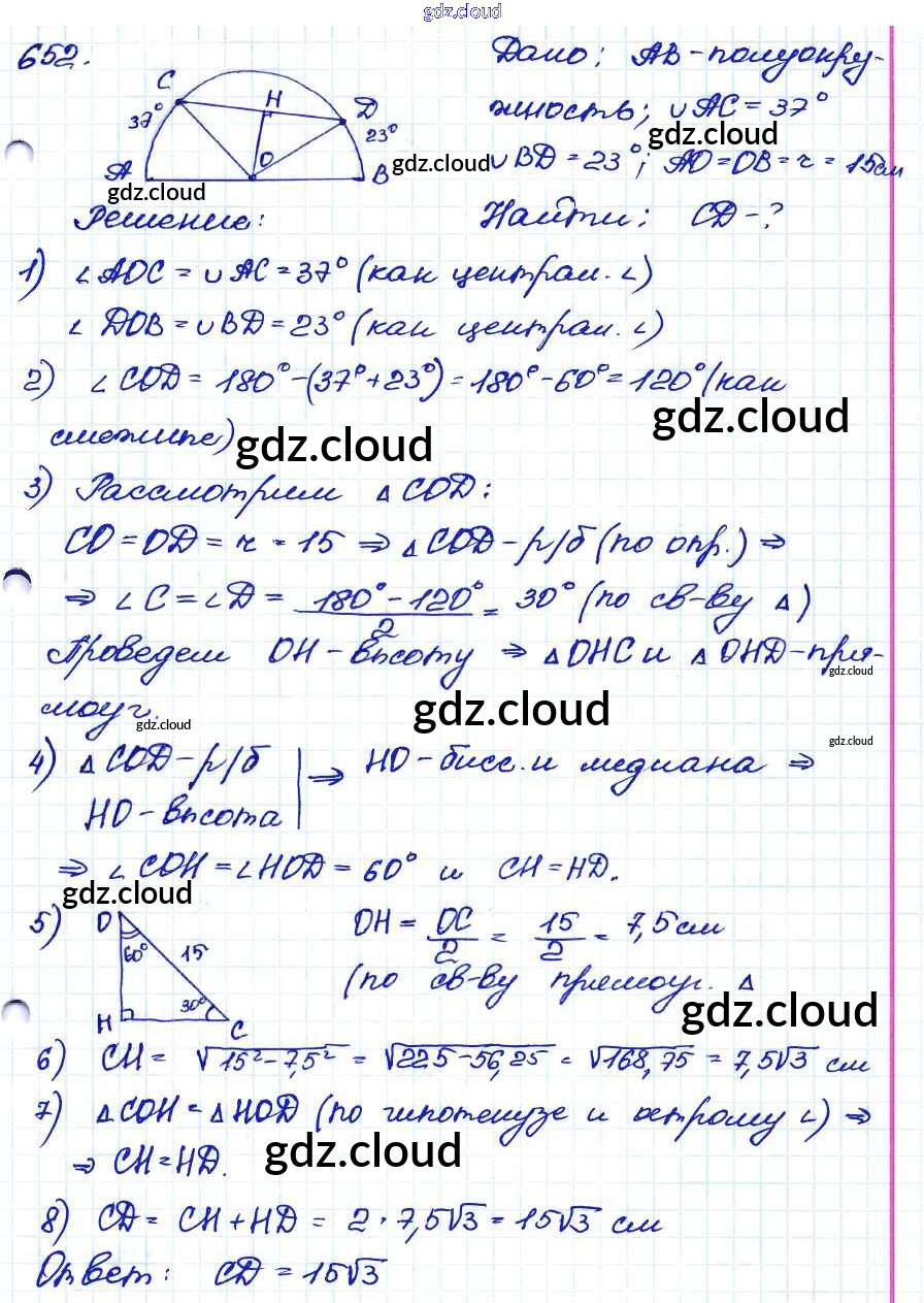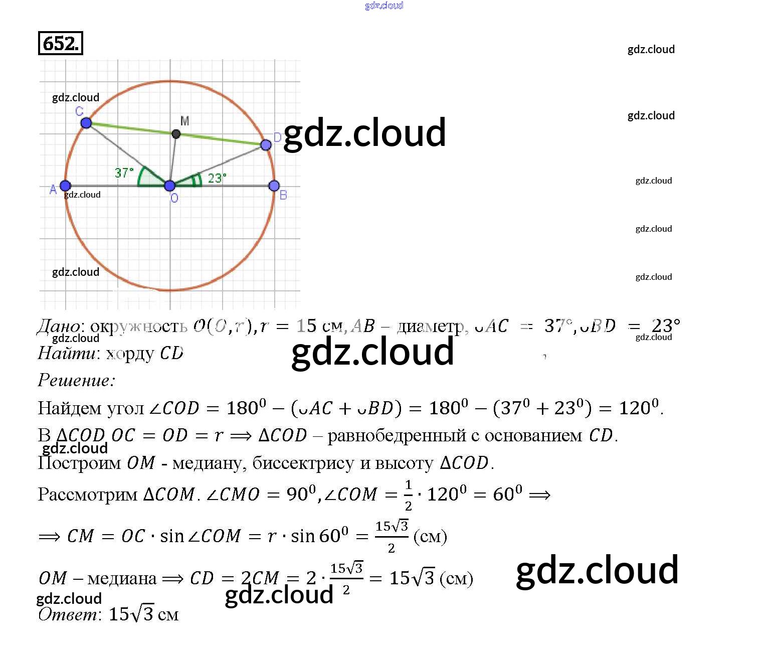 Ответ на задание 652 Учебник Геометрия за 7, 8, 9 (седьмой, восьмой, девятый) класс Атанасян, Бутузов, Кадомцев 2010