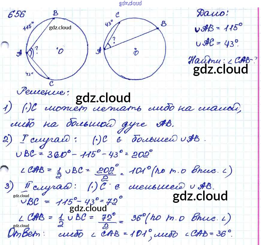 Ответ на задание 656 Учебник Геометрия за 7, 8, 9 (седьмой, восьмой, девятый) класс Атанасян, Бутузов, Кадомцев 2010