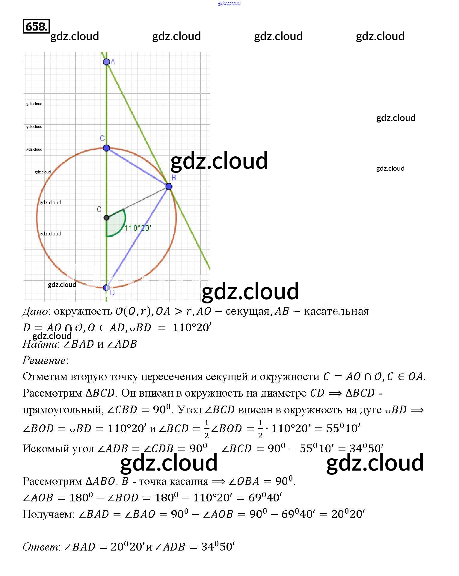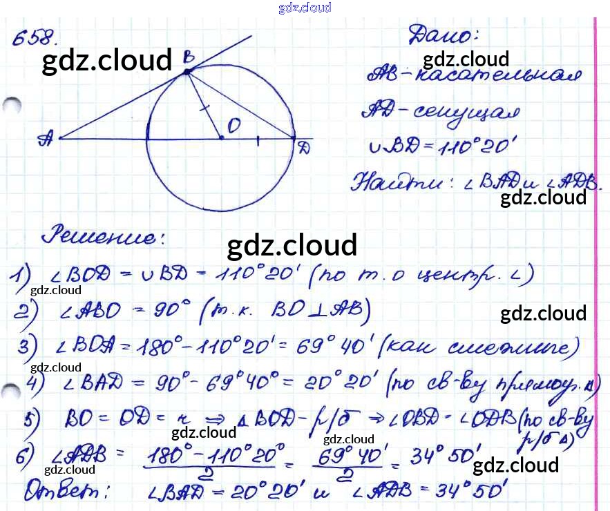 Ответ на задание 658 Учебник Геометрия за 7, 8, 9 (седьмой, восьмой, девятый) класс Атанасян, Бутузов, Кадомцев 2010