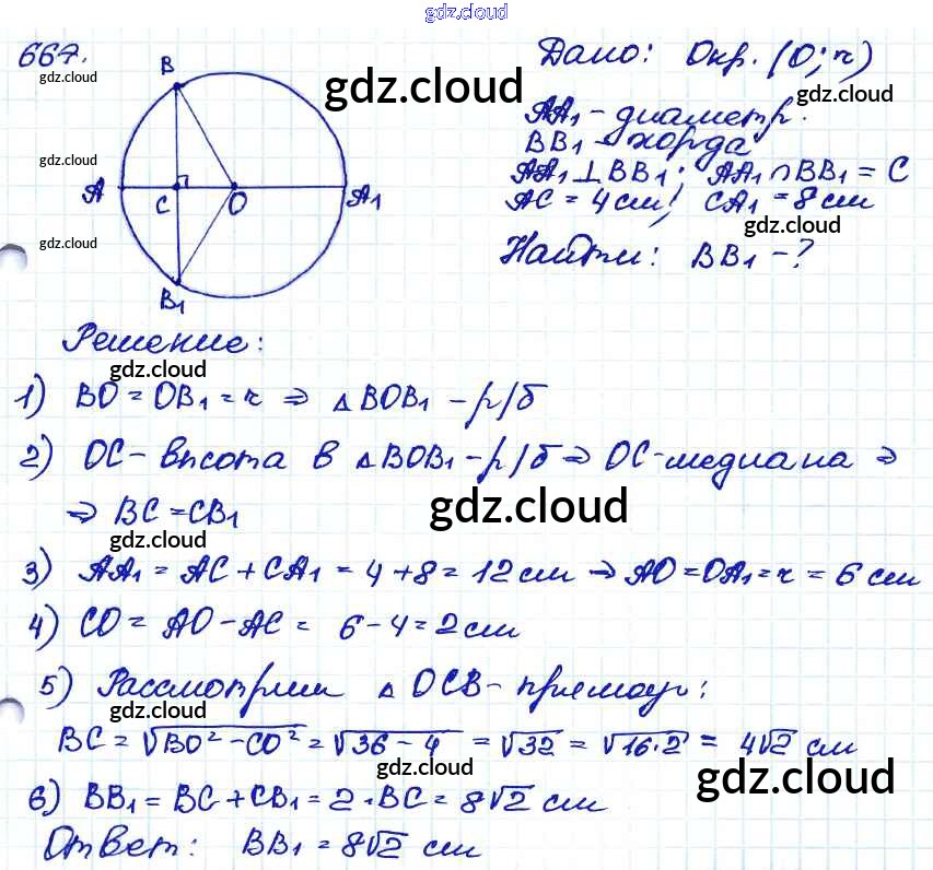 Ответ на задание 667 Учебник Геометрия за 7, 8, 9 (седьмой, восьмой, девятый) класс Атанасян, Бутузов, Кадомцев 2010