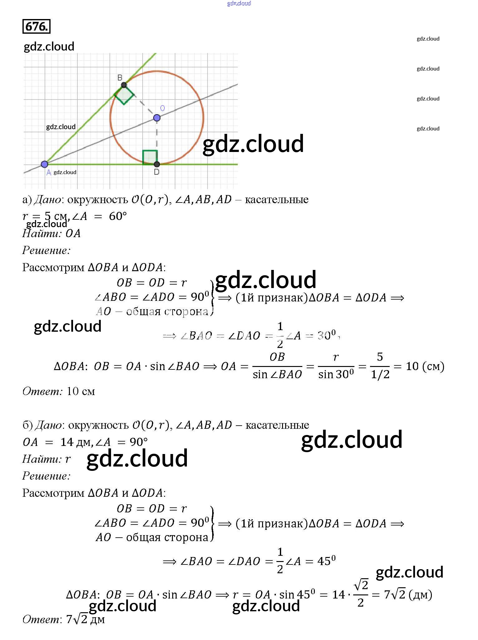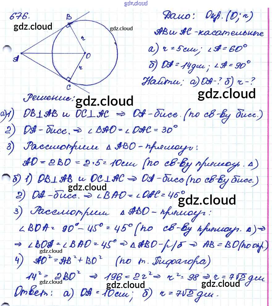Ответ на задание 676 Учебник Геометрия за 7, 8, 9 (седьмой, восьмой, девятый) класс Атанасян, Бутузов, Кадомцев 2010
