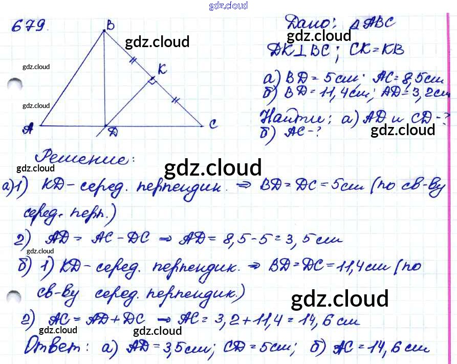 Ответ на задание 679 Учебник Геометрия за 7, 8, 9 (седьмой, восьмой, девятый) класс Атанасян, Бутузов, Кадомцев 2010