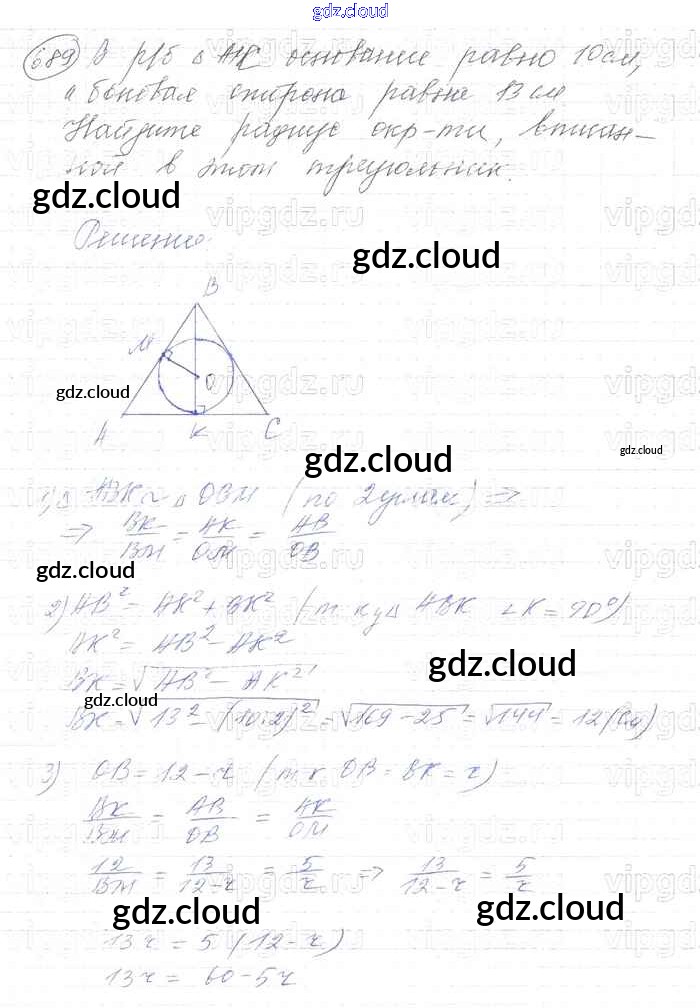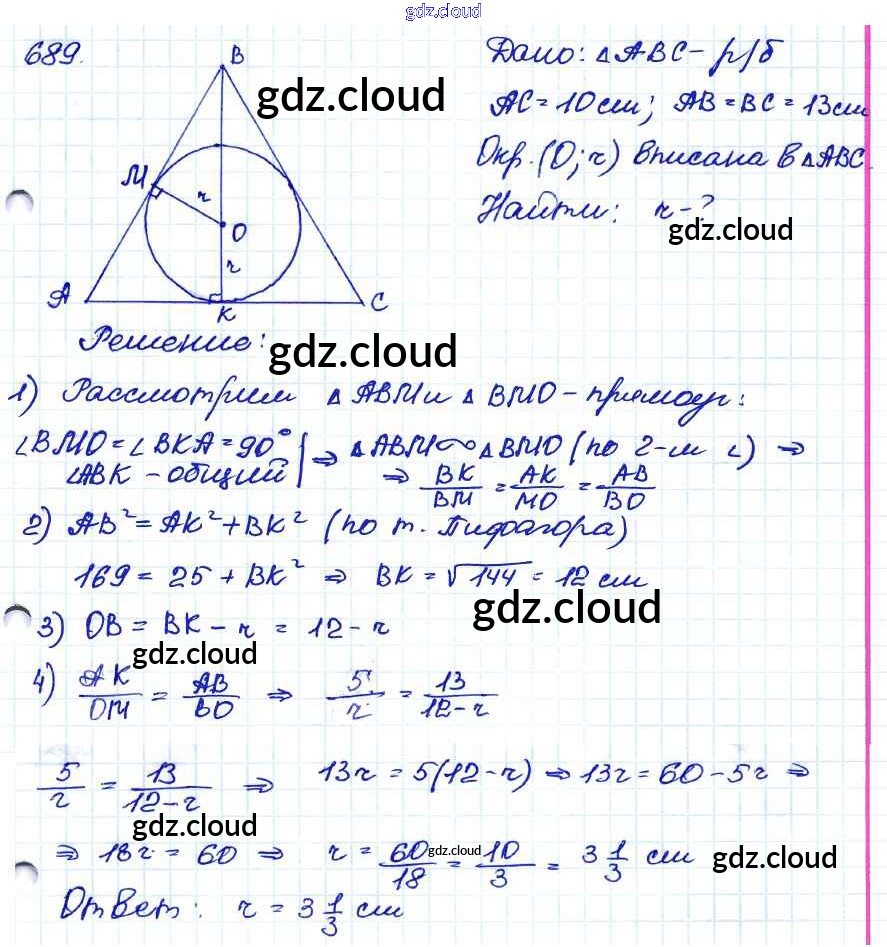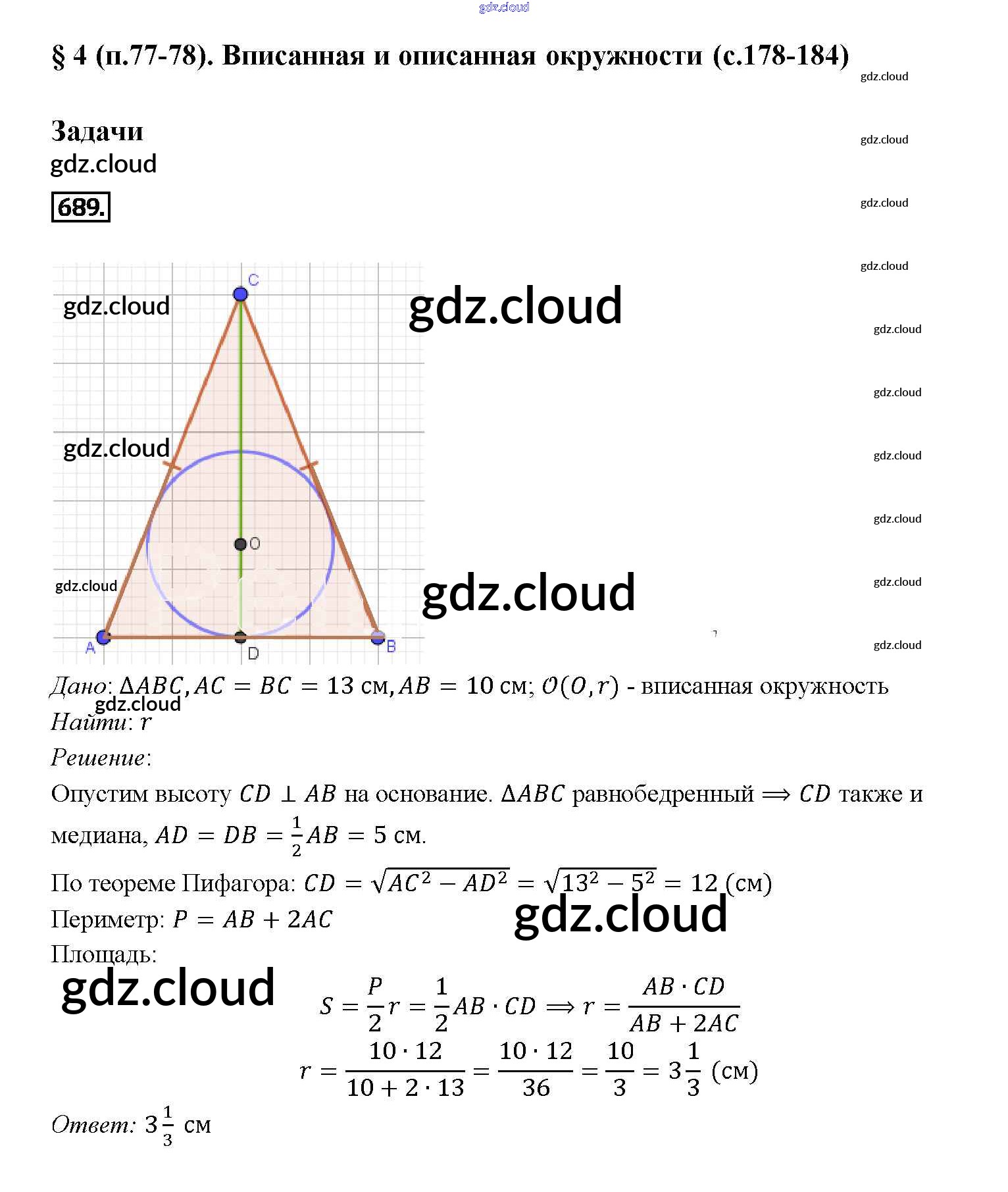 Ответ на задание 689 Учебник Геометрия за 7, 8, 9 (седьмой, восьмой, девятый) класс Атанасян, Бутузов, Кадомцев 2010