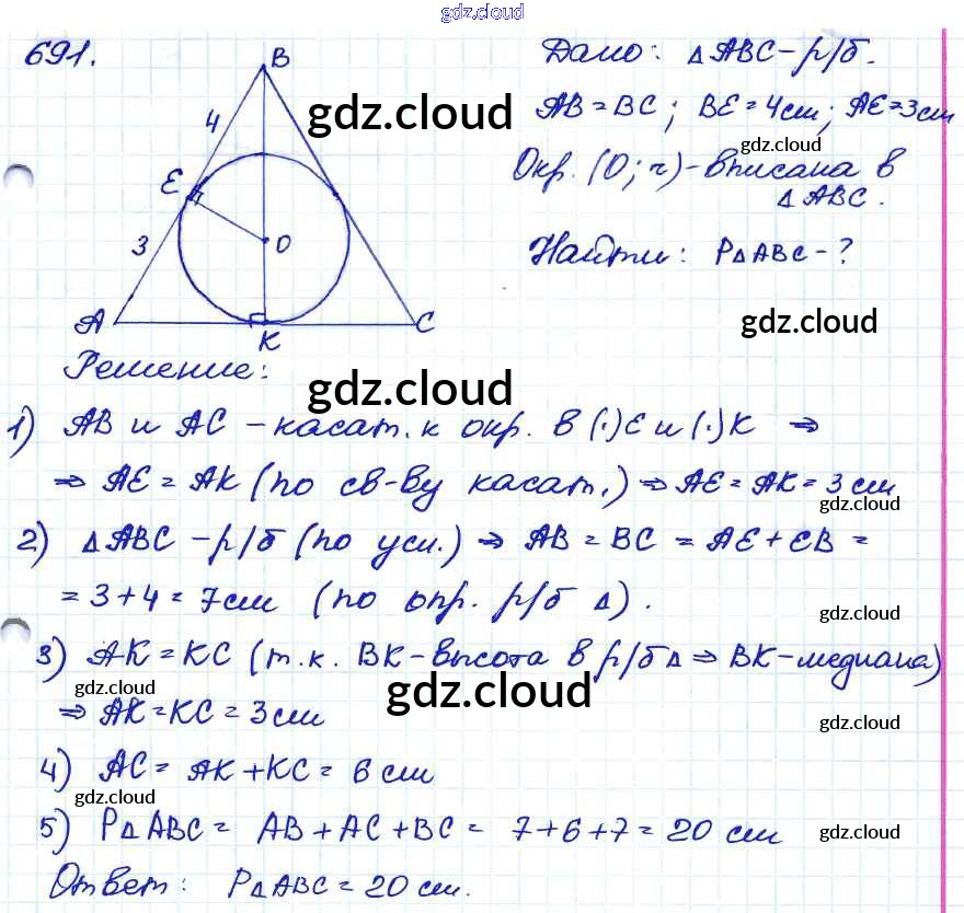 Ответ на задание 691 Учебник Геометрия за 7, 8, 9 (седьмой, восьмой, девятый) класс Атанасян, Бутузов, Кадомцев 2010