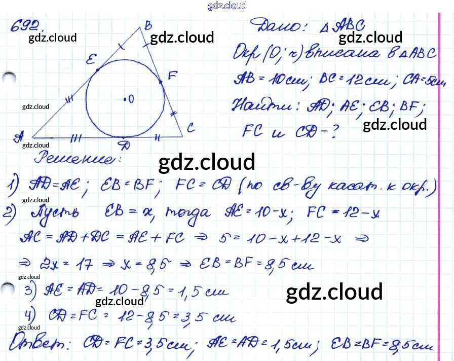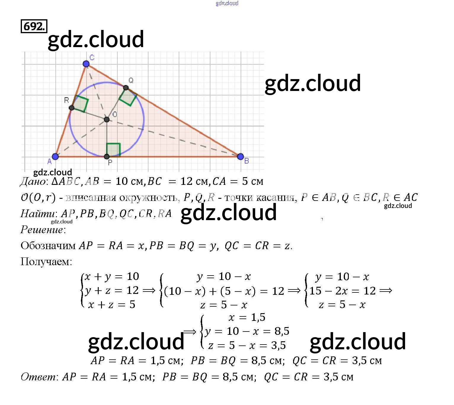 Ответ на задание 692 Учебник Геометрия за 7, 8, 9 (седьмой, восьмой, девятый) класс Атанасян, Бутузов, Кадомцев 2010