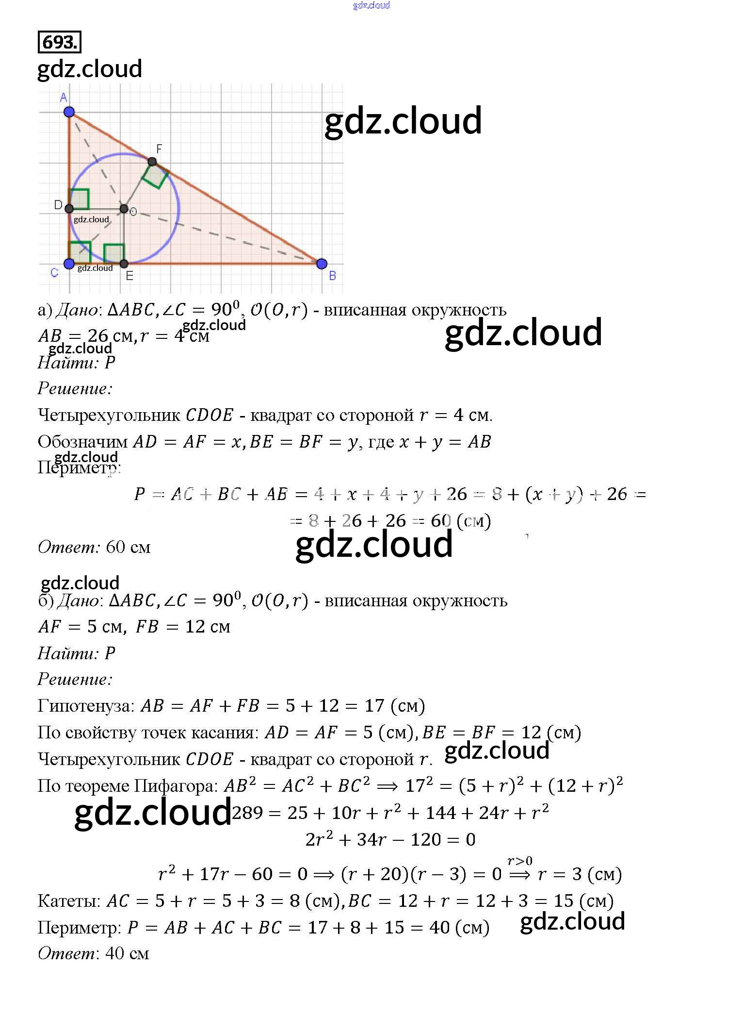 Ответ на задание 693 Учебник Геометрия за 7, 8, 9 (седьмой, восьмой, девятый) класс Атанасян, Бутузов, Кадомцев 2010
