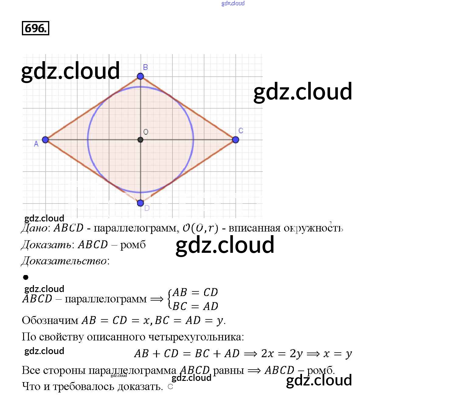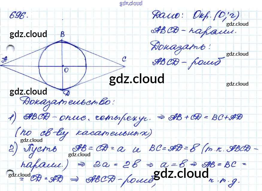 Ответ на задание 696 Учебник Геометрия за 7, 8, 9 (седьмой, восьмой, девятый) класс Атанасян, Бутузов, Кадомцев 2010