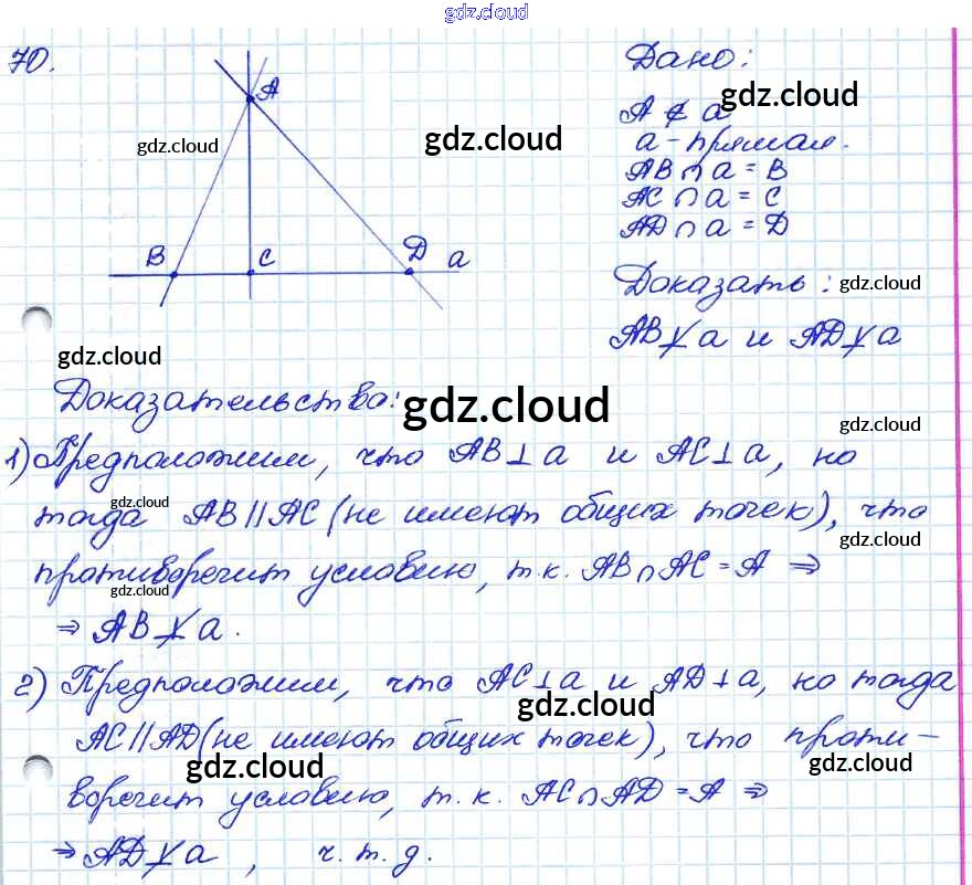 Ответ на задание 70 Учебник Геометрия за 7, 8, 9 (седьмой, восьмой, девятый) класс Атанасян, Бутузов, Кадомцев 2010