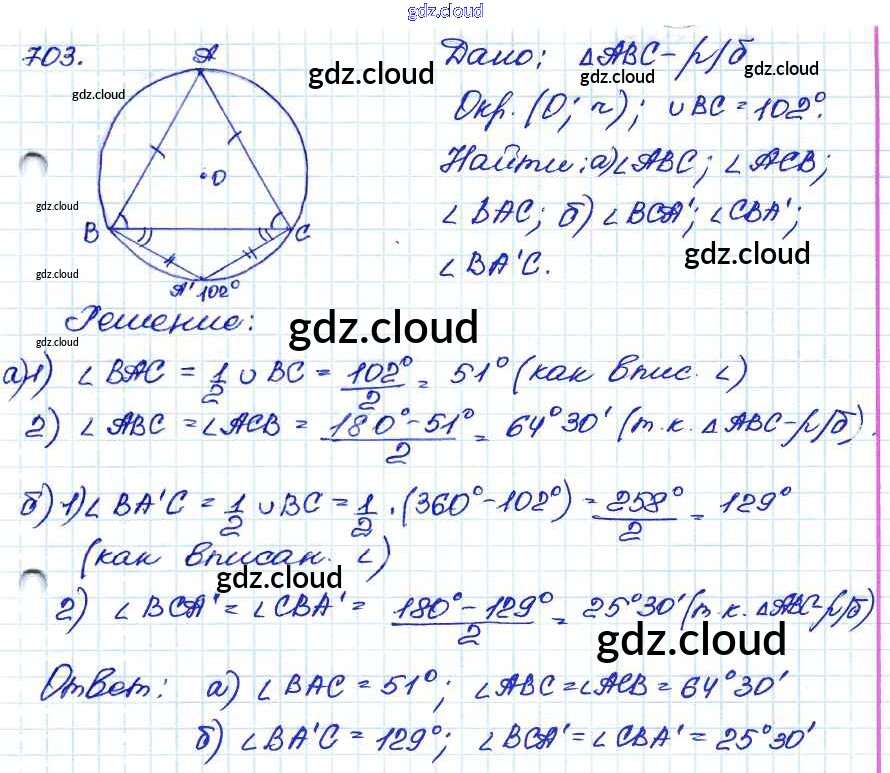 Ответ на задание 703 Учебник Геометрия за 7, 8, 9 (седьмой, восьмой, девятый) класс Атанасян, Бутузов, Кадомцев 2010