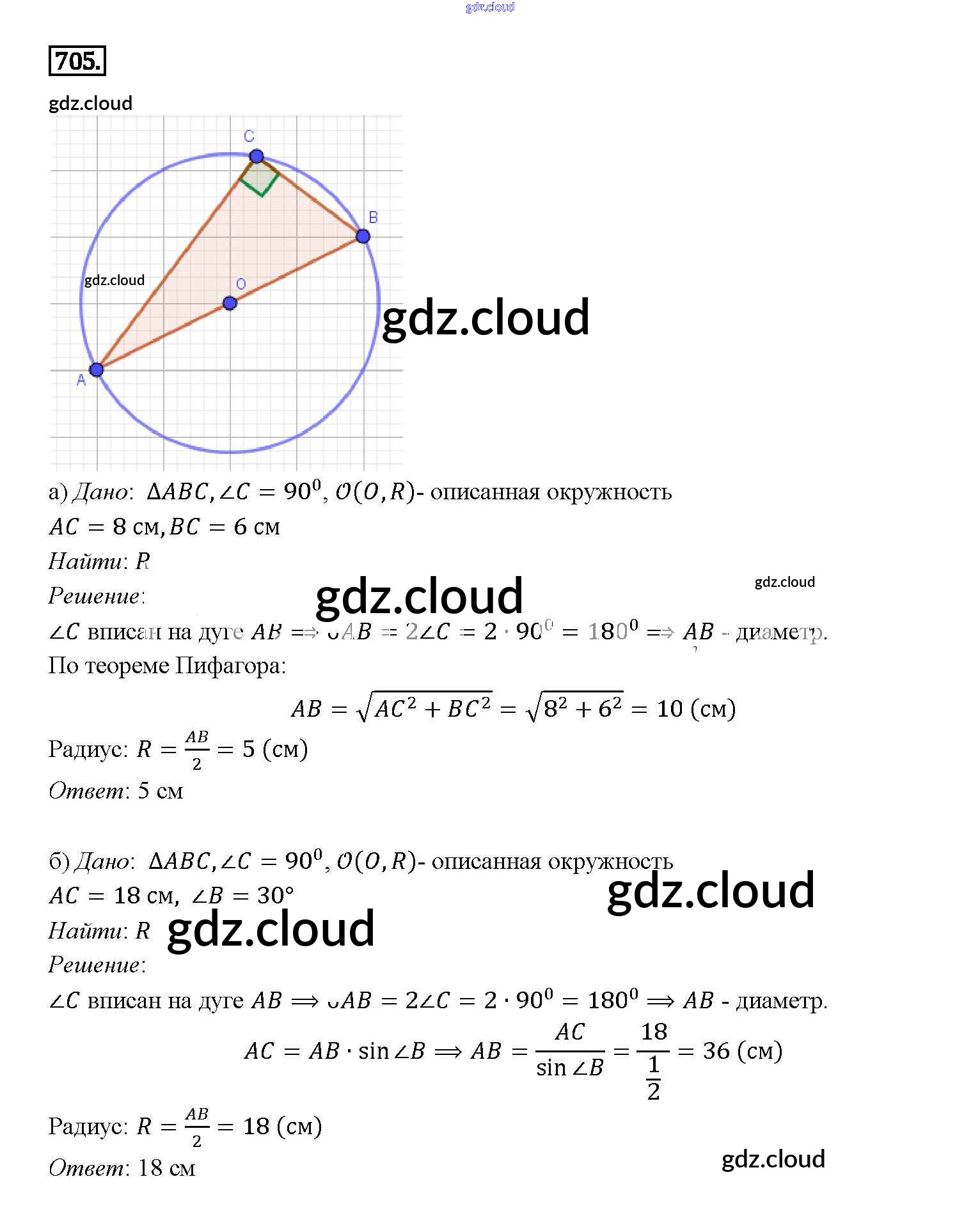Ответ на задание 705 Учебник Геометрия за 7, 8, 9 (седьмой, восьмой, девятый) класс Атанасян, Бутузов, Кадомцев 2010
