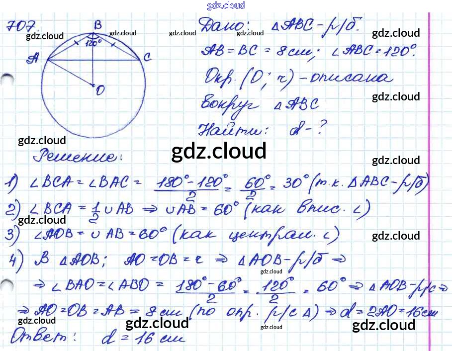 Ответ на задание 707 Учебник Геометрия за 7, 8, 9 (седьмой, восьмой, девятый) класс Атанасян, Бутузов, Кадомцев 2010