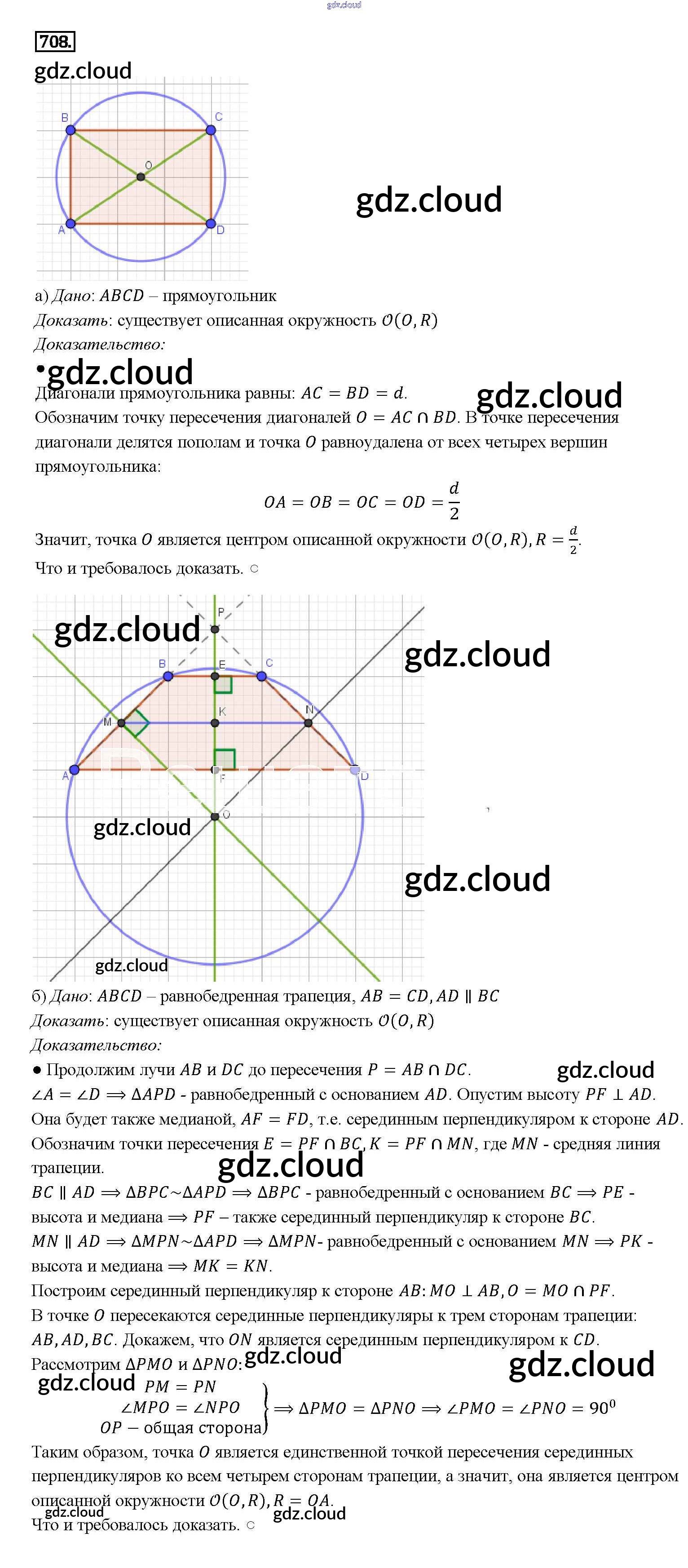 Ответ на задание 708 Учебник Геометрия за 7, 8, 9 (седьмой, восьмой, девятый) класс Атанасян, Бутузов, Кадомцев 2010
